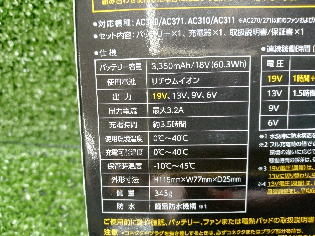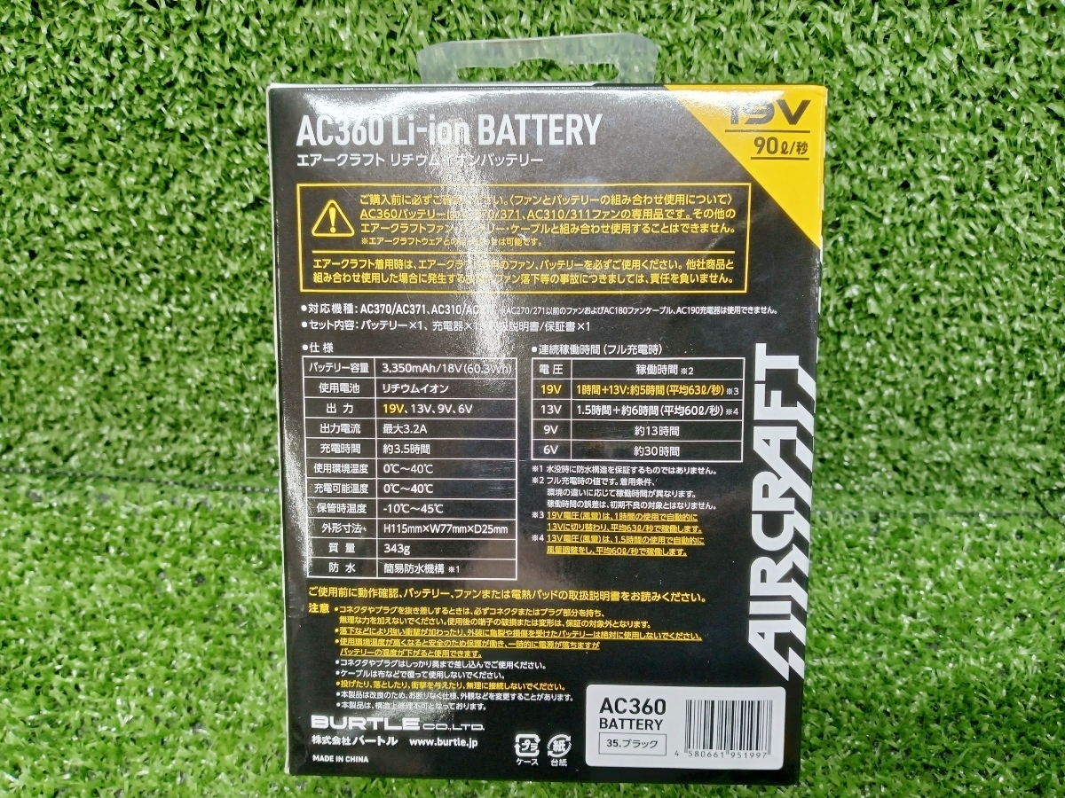 【 未使用品 BURTLE バートル エアークラフト 19V リチウムイオンバッテリー AC360 】 | |