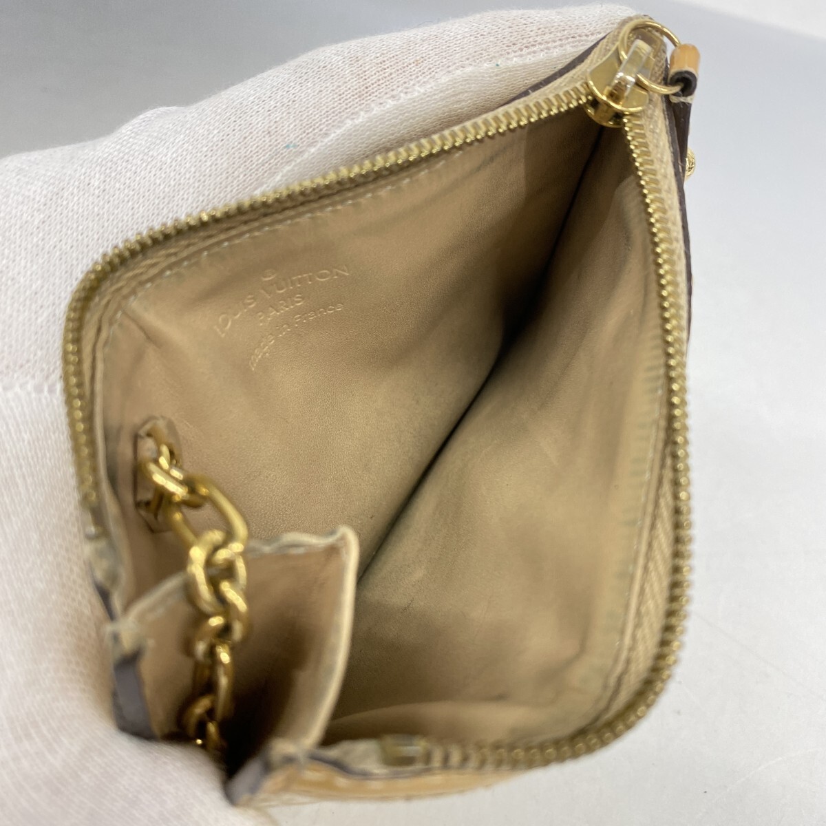 【5id4823-h】ルイヴィトン コインケース ヴェルニ ポシェットクレNM M91763 ベージュプードル【中古】レディース