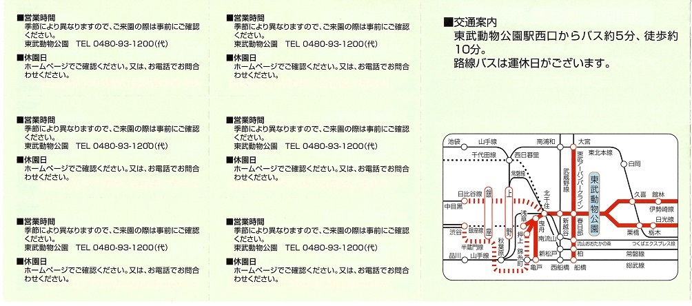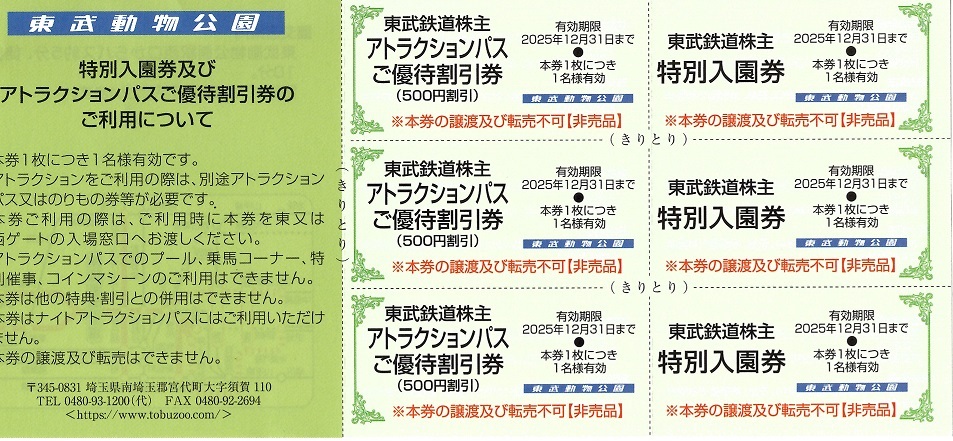 東武鉄道 株主優待券 東武動物公園 特別入園券+アトラクションパス割引券 3枚セット 2025年12月31日迄 1~2組有