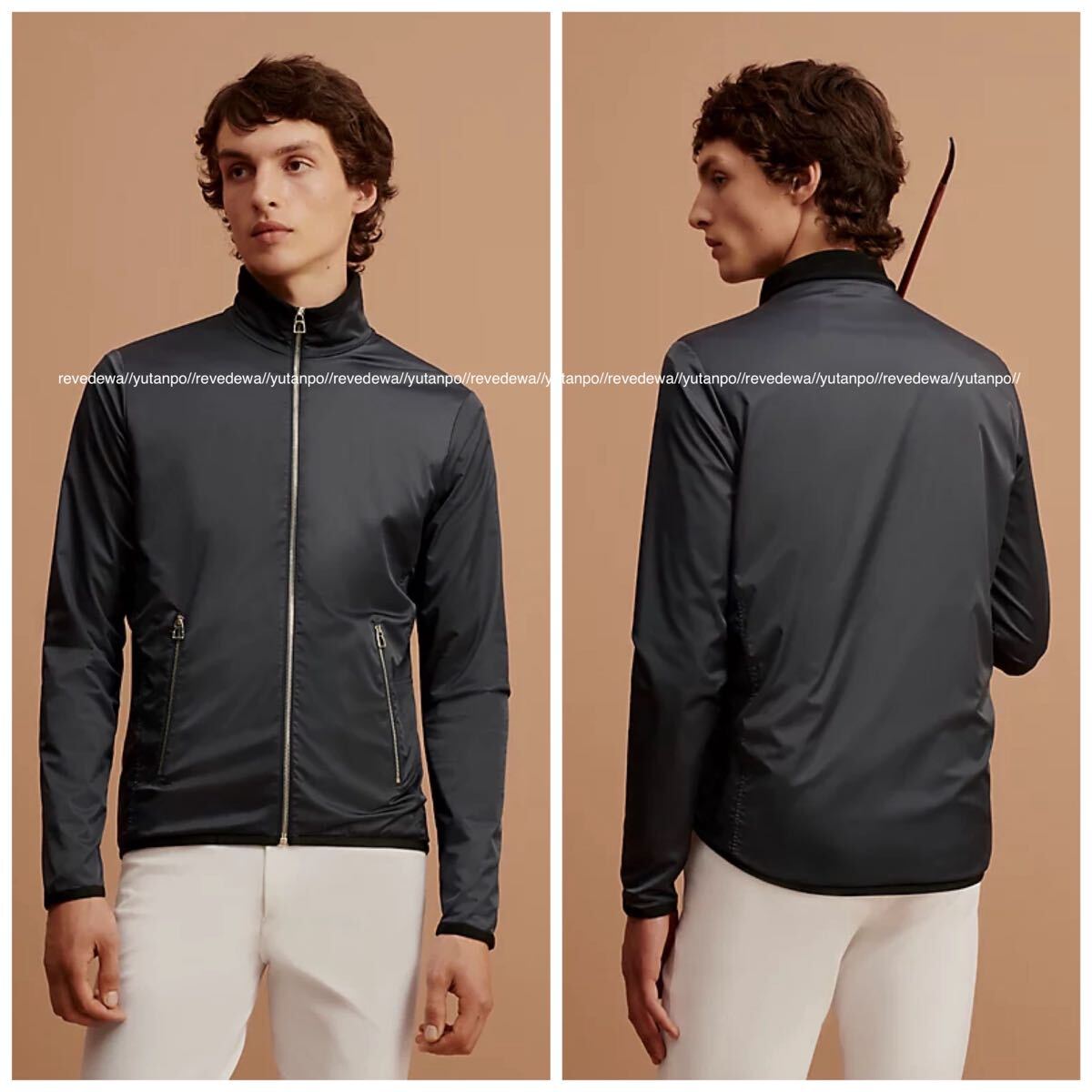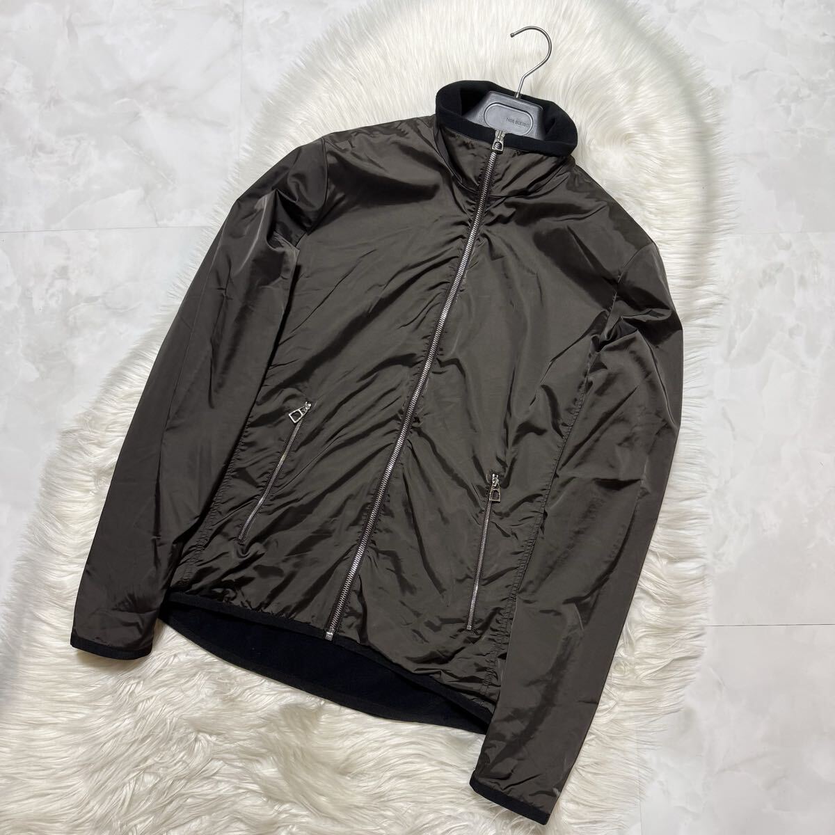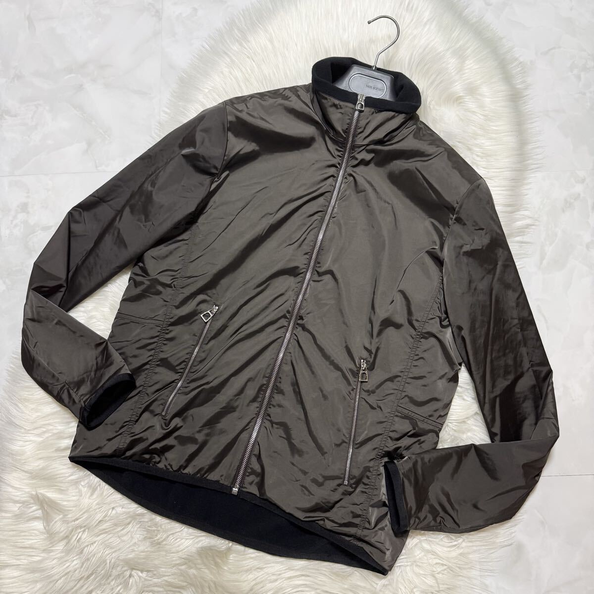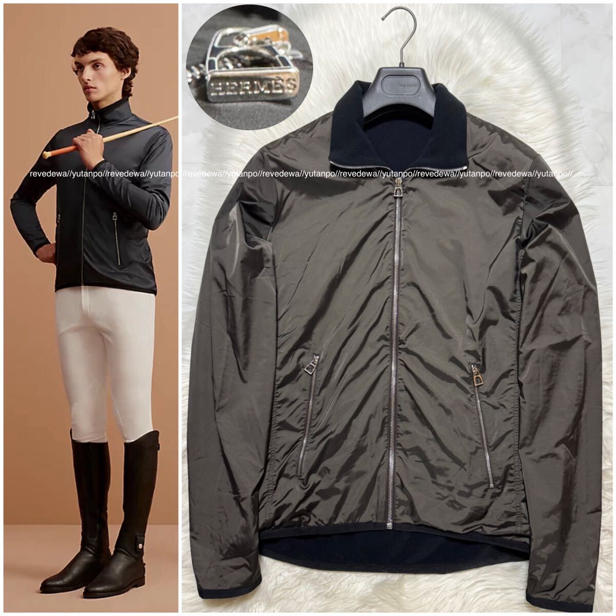 | 本物 美品 カタログ掲載モデル エルメス フリース ナイロン ジャケット M ダークカーキ×ブラック HERMS | |||||
