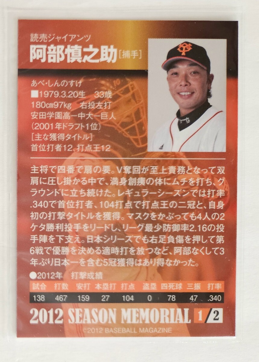 2012年BBM 週刊ベースボール シーズンメモリアル 阿部慎之助 巨人 ジャイアンツ