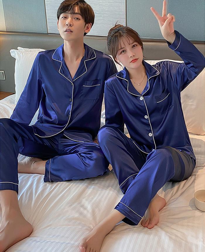 メンズパジャマ ナイトウェア長袖スリープ トップ ズボン シルク風 L