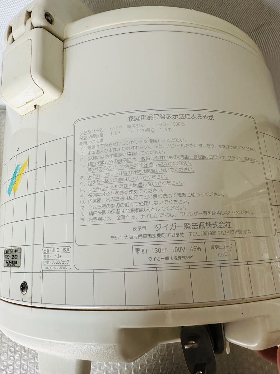 昭和レトロ タイガー 電子ジャー JHD-1800