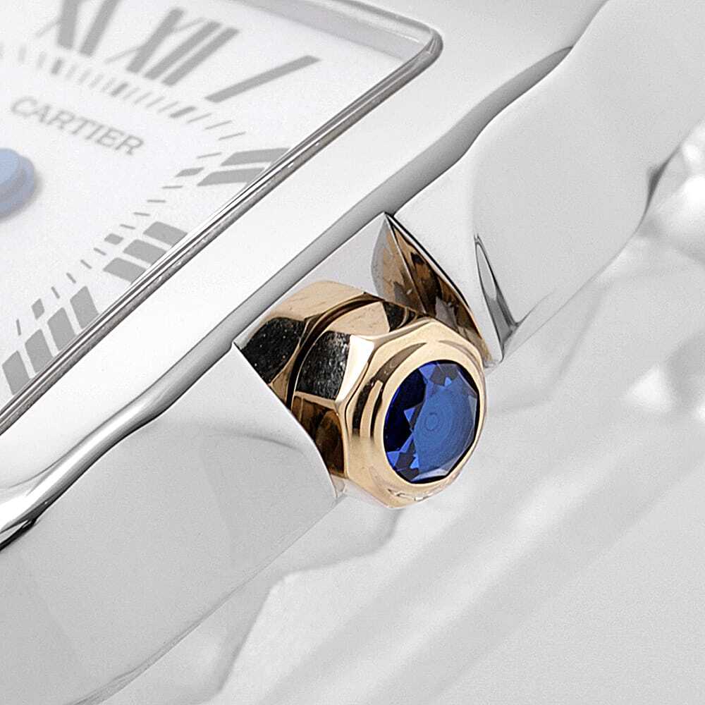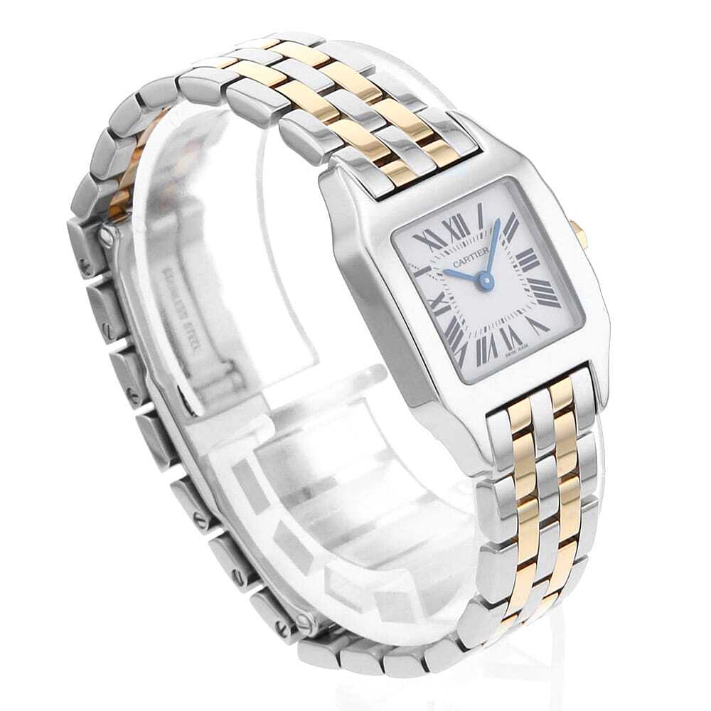 モデル情報 | ドゥ モワゼルシリーズは、サントス誕生100周年の節目である2005年に発表されました。人気機種であったサントスとパンテール双方のデザインを取り入れたとてもフェミニンなモデルです。惜しまれつつも廃盤となったミニパンテールの後継モデルとも言われています。 |