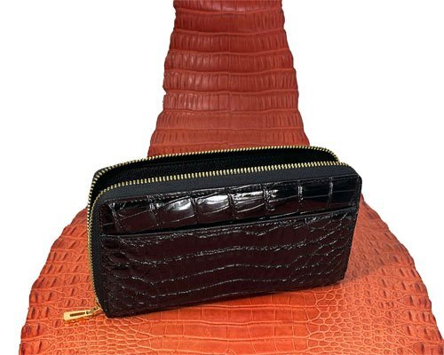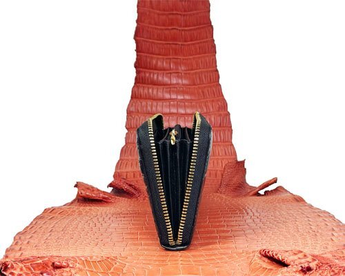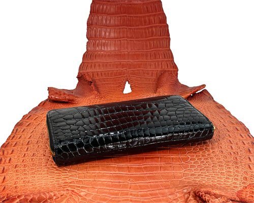 | ヘンローン社製 クロコスキン 世界で最高のクロコダイルの染色技術をもった会社です。 他メーカーのスキンとの差は、歴然としており、 イタリア・フランス・アメリカ・日本等に輸出している クロコダイルスキンのトップメーカーです。 この製品は、ヘンローン社のクロコスキンを使用して縫製されたものです。 |