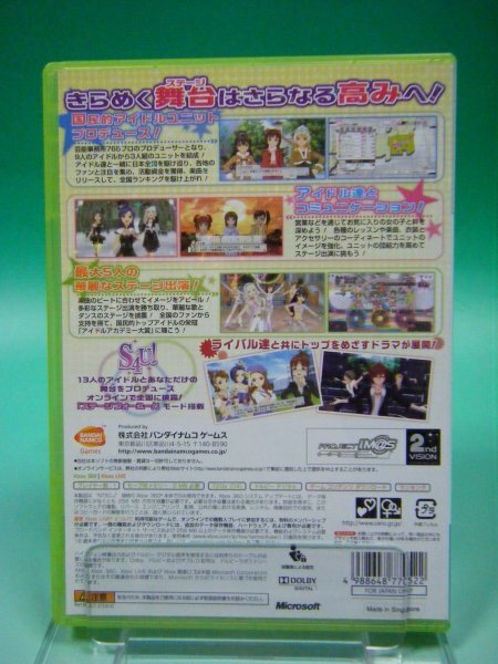 | 【内 容】 国内正規盤 <初回限定生産品> 1:「きらきらパッケージ仕様」 2:「765プロアイドル撮りおろし宣材生写真」(全4種セット) 3:「765プロ社員証」(社員No.+シリアルID入り) ~メディア掲載より~ きらめく舞台はさらなる高みへ!新765プロダクションREST@RT! ついに15万本突破!芸能事務所765プロの新人プロデューサーとなりトップアイドルを 育ててゆくXbox 360「アイドルマスター」発売から4年。 完全新作となる本作では新765プロを舞台に「国民的アイドルユニット」をめざし、 3人組のユニットを結成。 全国を巡る営業・レッスン・ステージ出演を成功に導き、各エリアのファンと注目を 集めよう! ライバル達と切磋琢磨して、楽曲チャートの全国ランキングを駆け上がれ! アイドル達が最も輝くステージは最大5人のライブも可能! 【状 態】 付録等写真のものが全てになります。 初回限定付録完備です。 トールケースに使用感(スレキズ等)が見られます。 全体としては見た目キレイで、付録(未開封)・盤面も良好で問題ありません。 再生検品済みです。 | ||