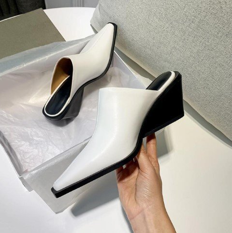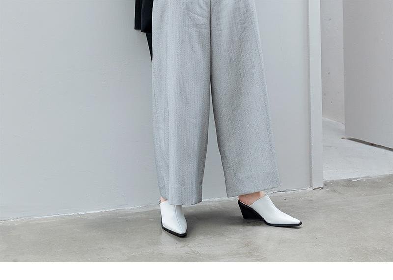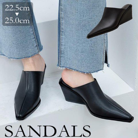 ・きれいめのスタイルに合わせやすいポインテッドトゥサンダル。