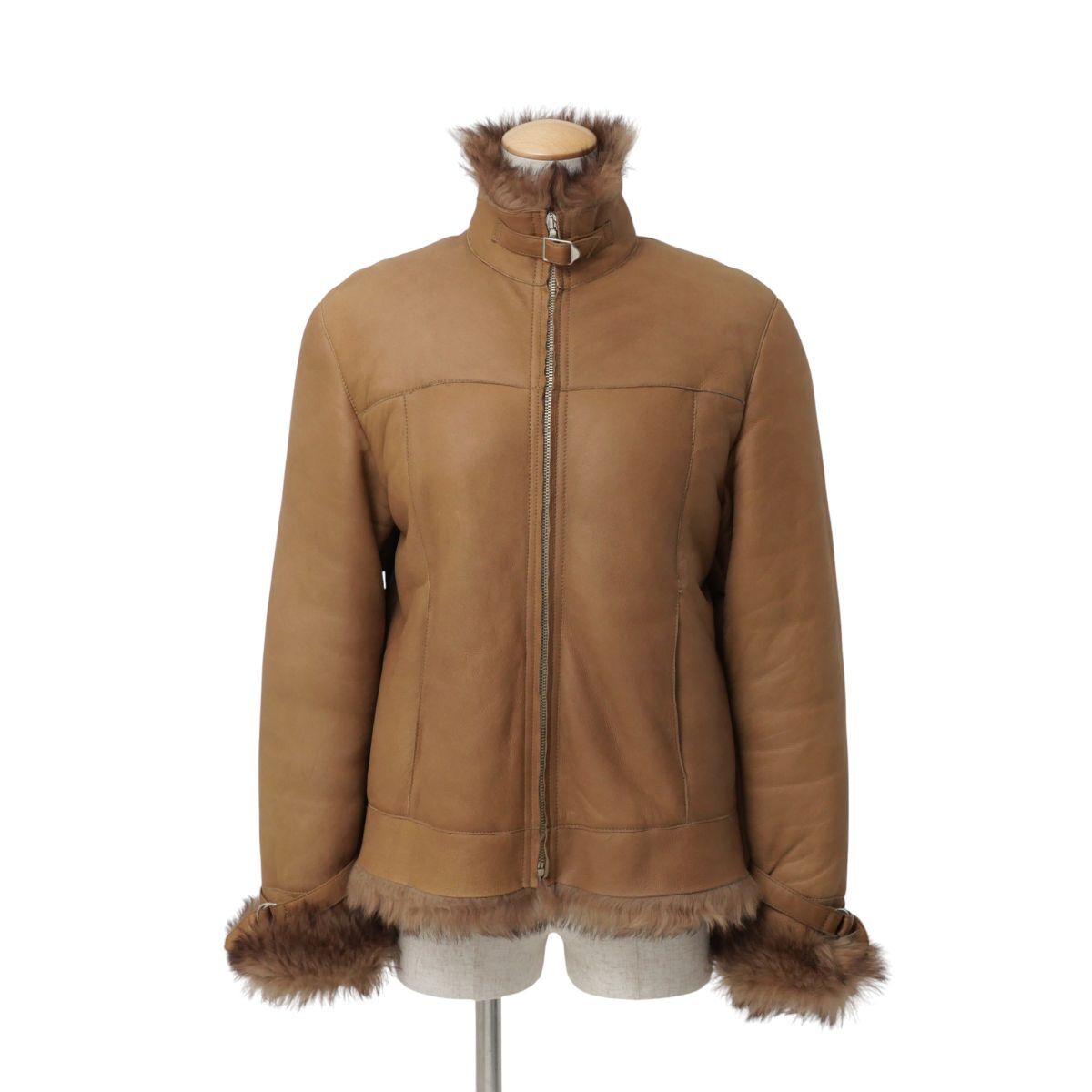 | TJ3826▲イタリア製 Emanuela Shearling ムートンジャケット ライダース 羊革 シープスキン リアルファー 本毛皮 レザー サイズL ブラウン | |||