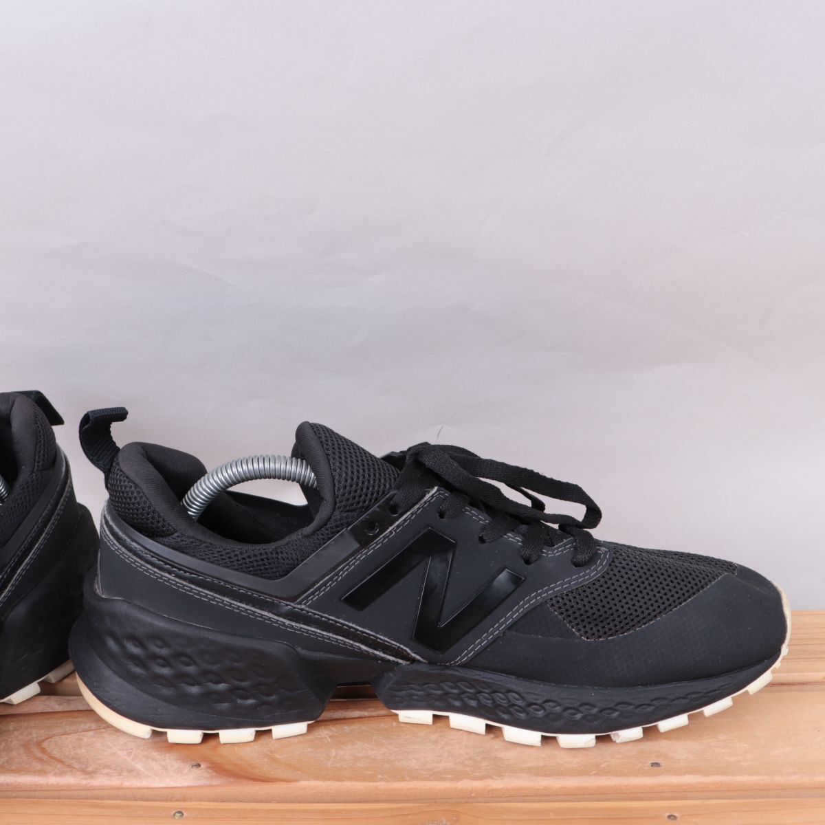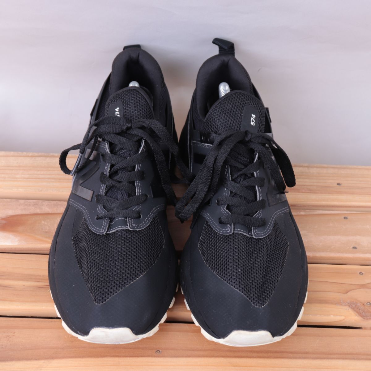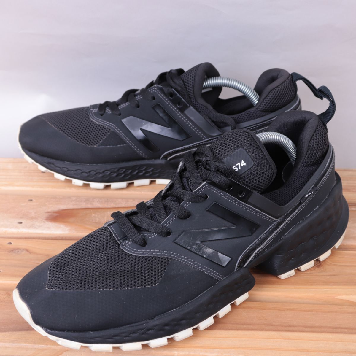 z2265【574】ニューバランス US9.5 27.5cm/黒 ブラック ライトベージュ newbalance メンズ スニーカー 中古