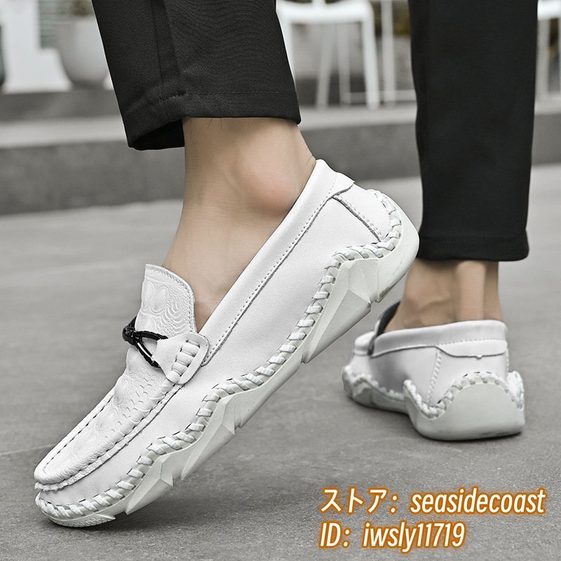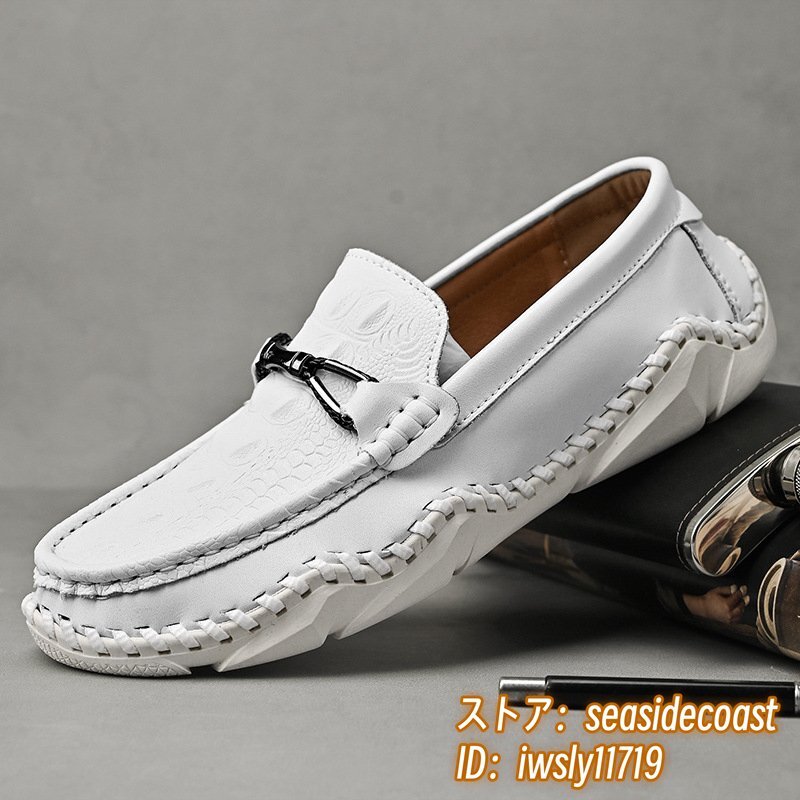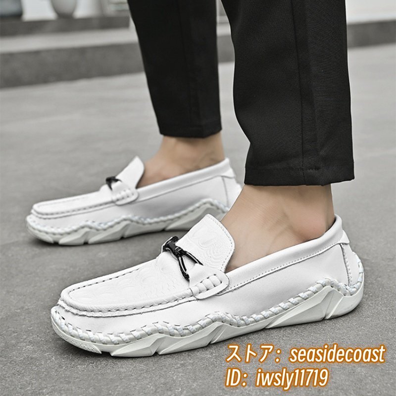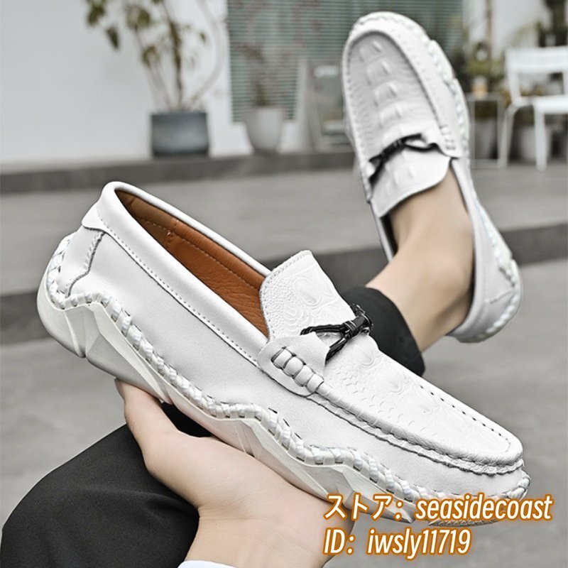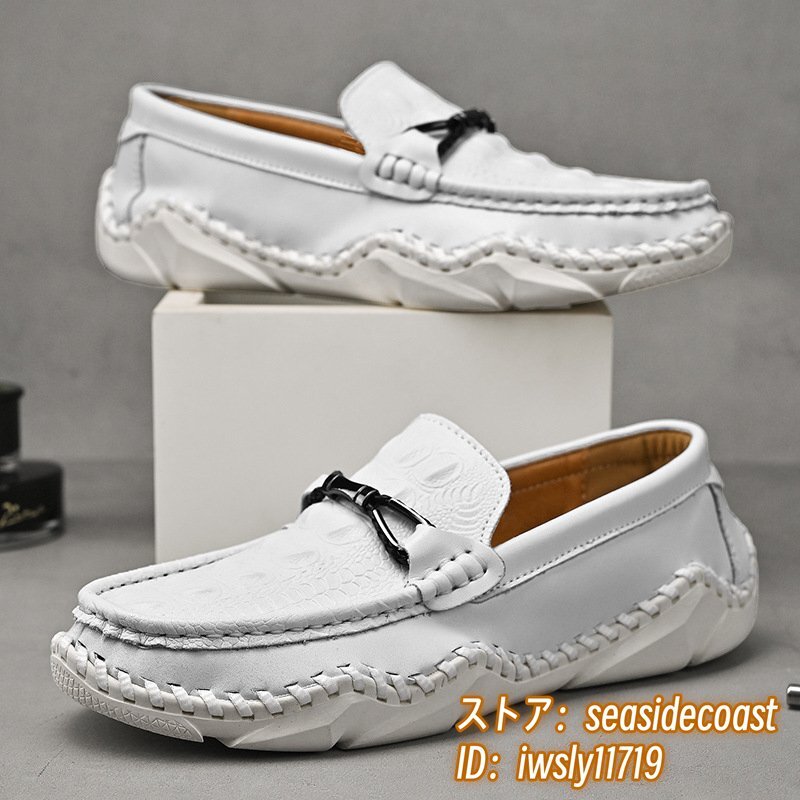 超美品★本革 ローファー スリッポン 新品 メンズ レザーシューズ 牛革 ビジネスシューズ ドライビングシューズ 紳士靴 ホワイト 26.0cm