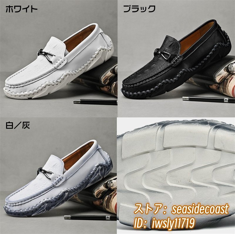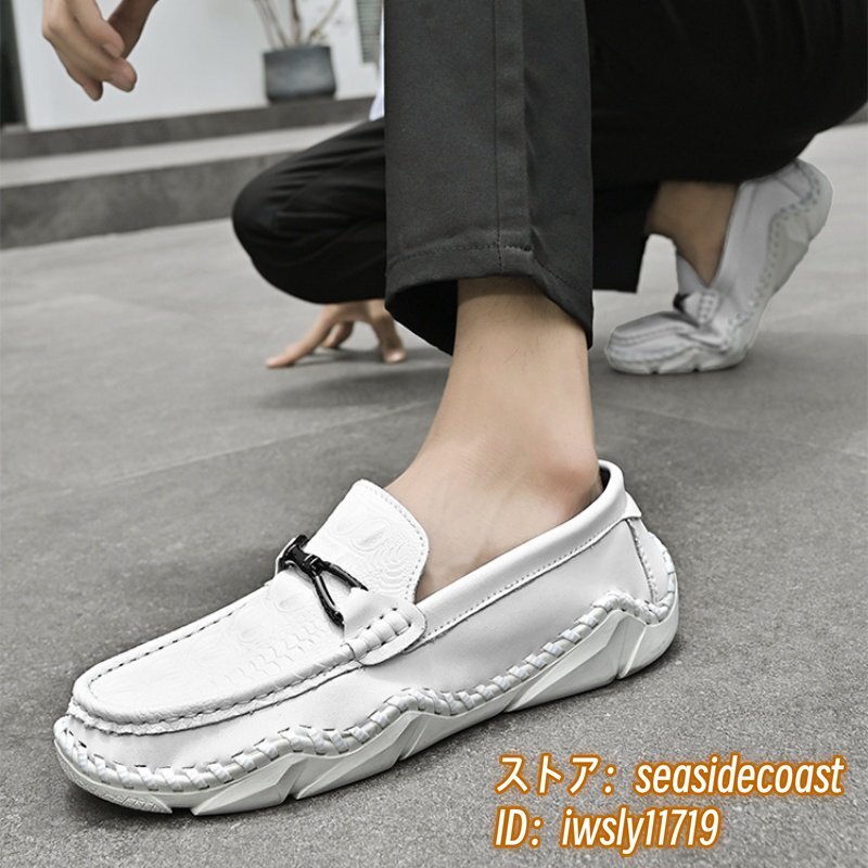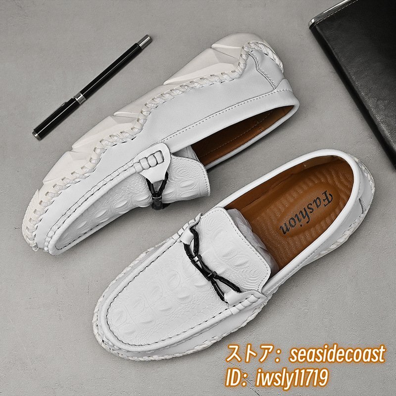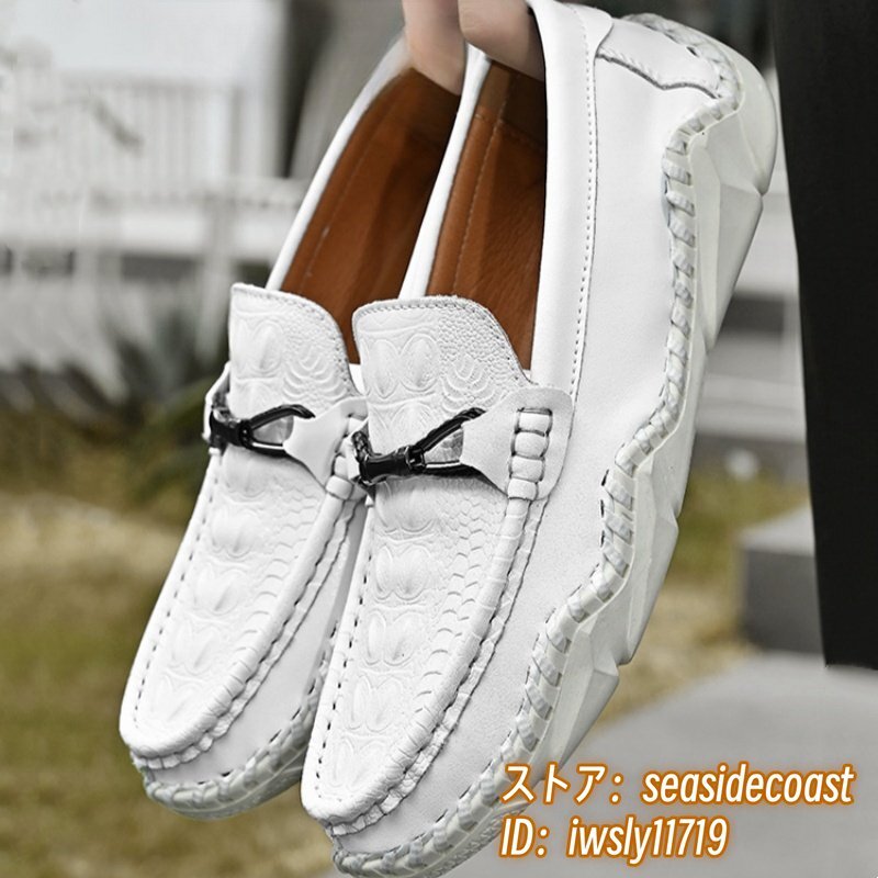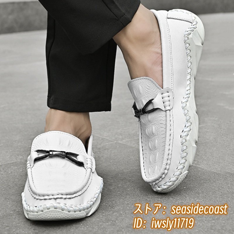 超美品★本革 ローファー スリッポン 新品 メンズ レザーシューズ 牛革 ビジネスシューズ ドライビングシューズ 紳士靴 ホワイト 26.0cm