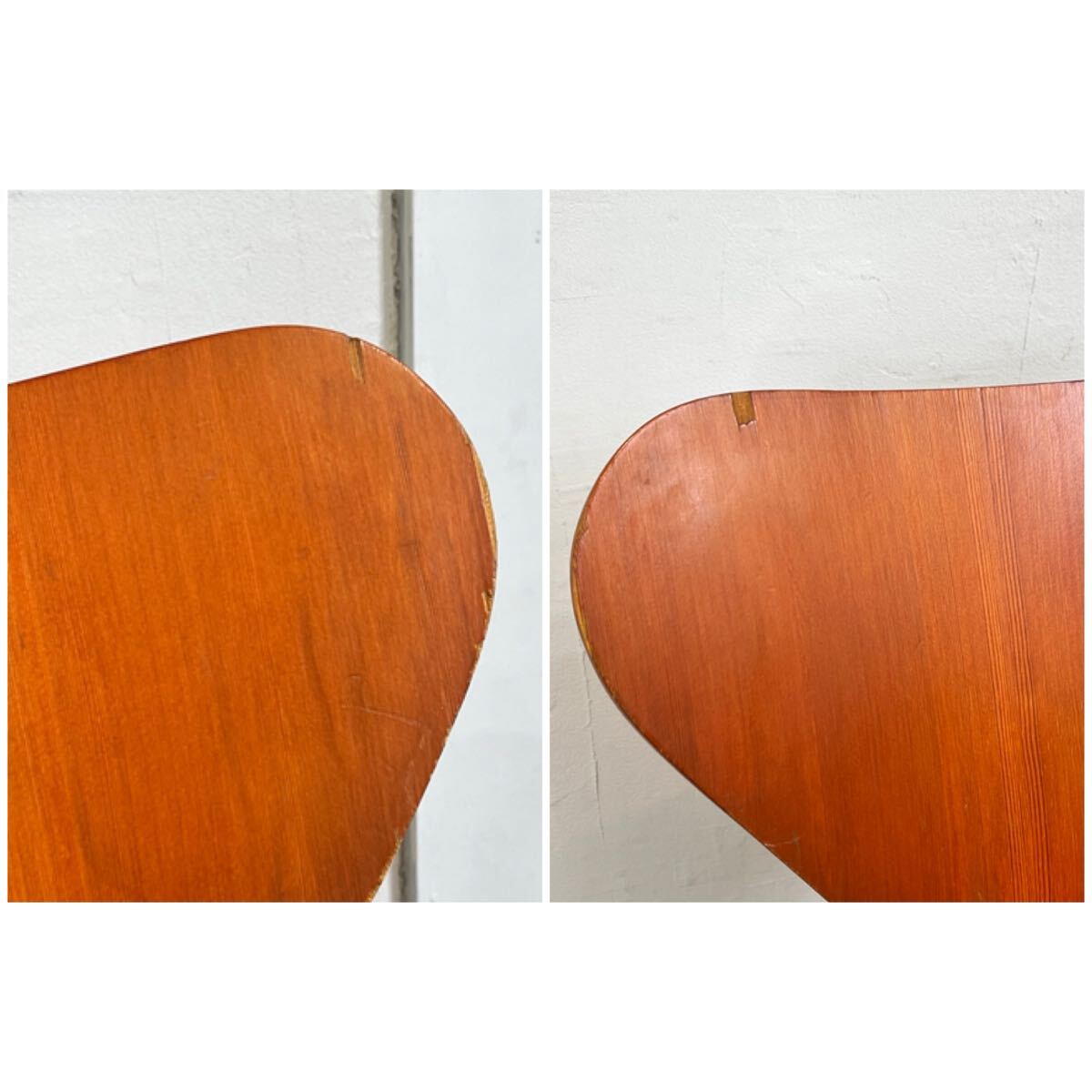 ・背もたれのエッジにプレイウッドのカケや削れがいくつか見られます。
