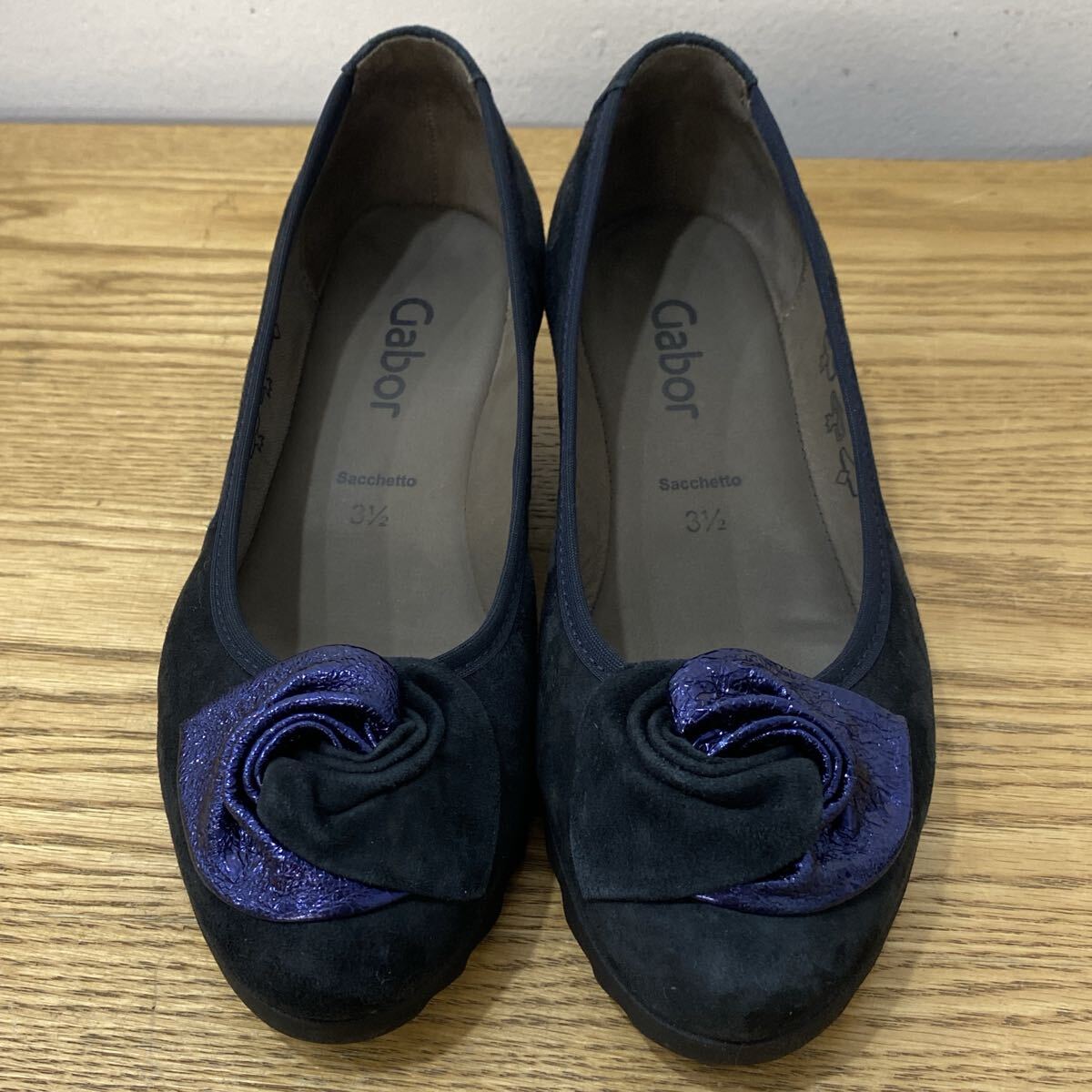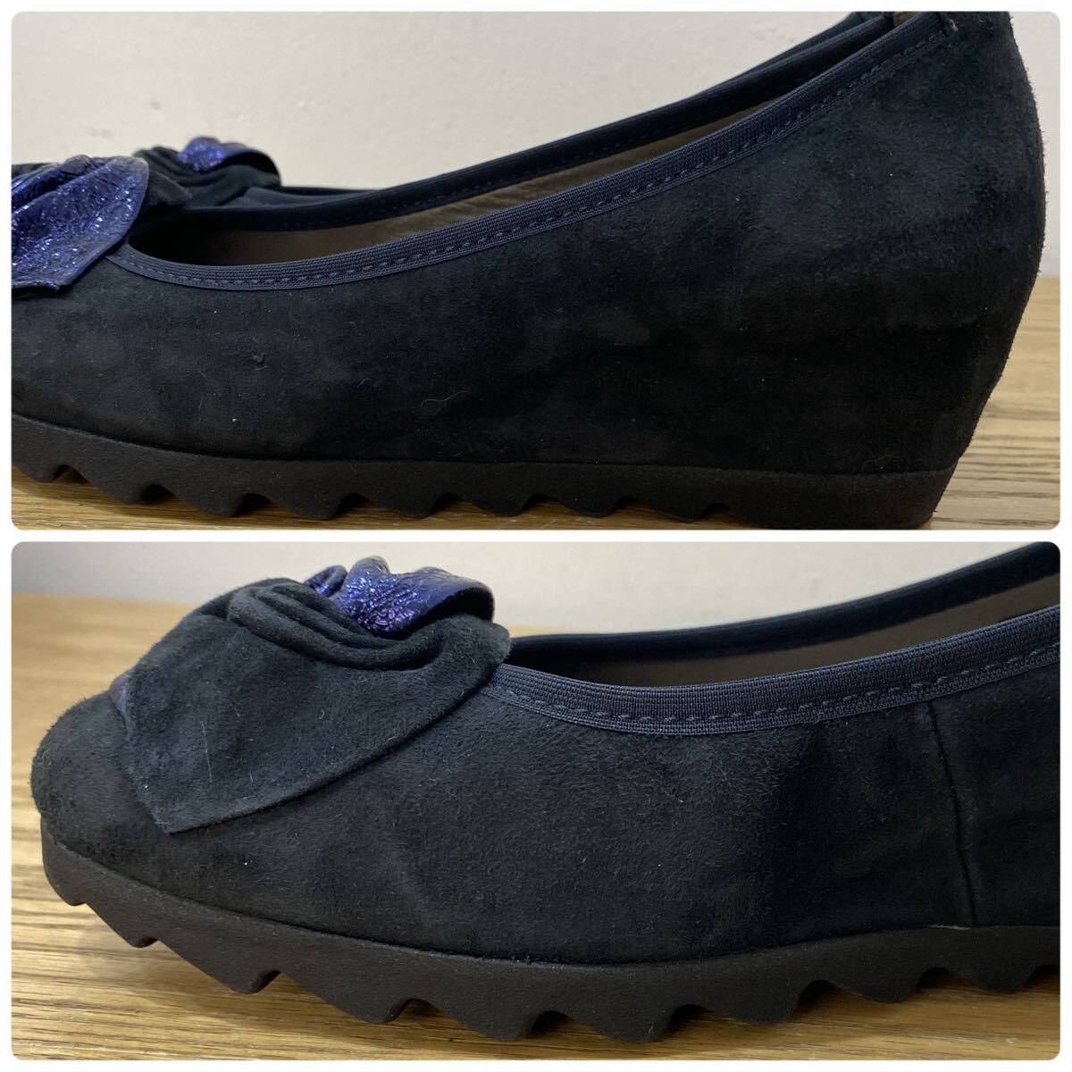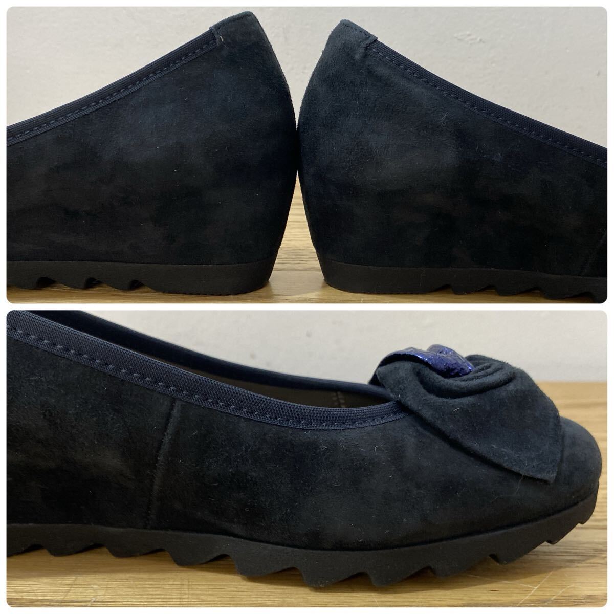 MWD09008◆ ガボール Gabor 本革スエード ブラック インヒール リボン コンフォート パンプス 23cm 85 323