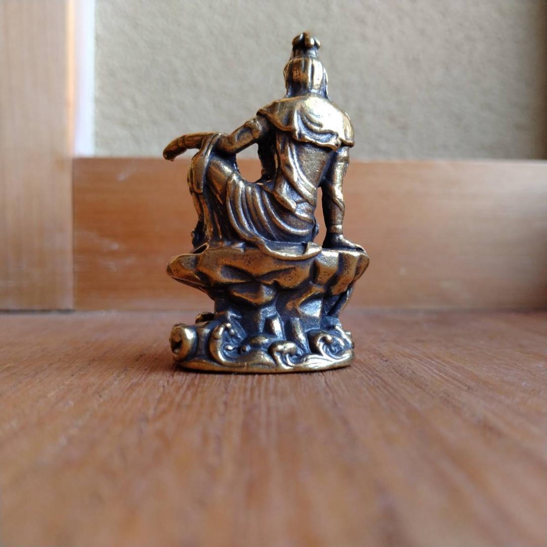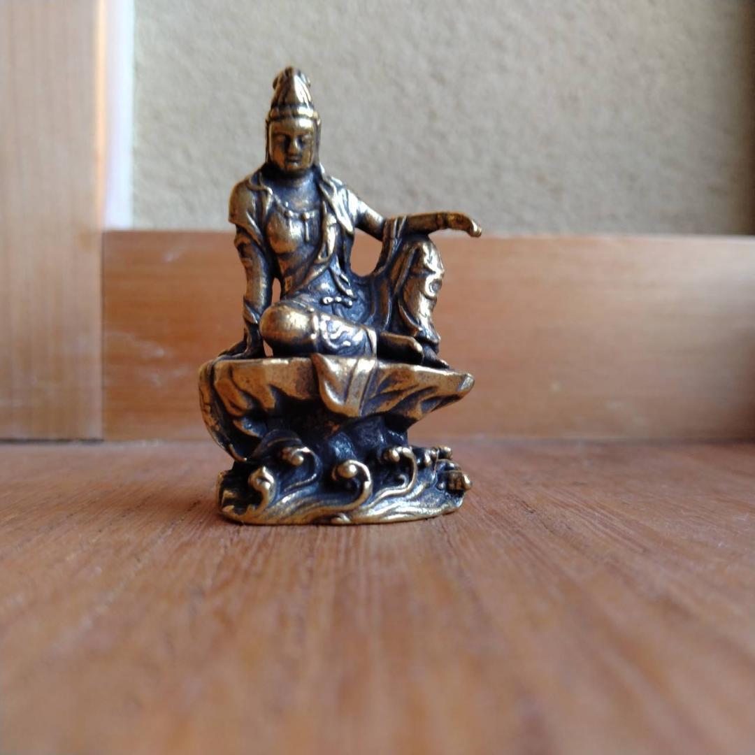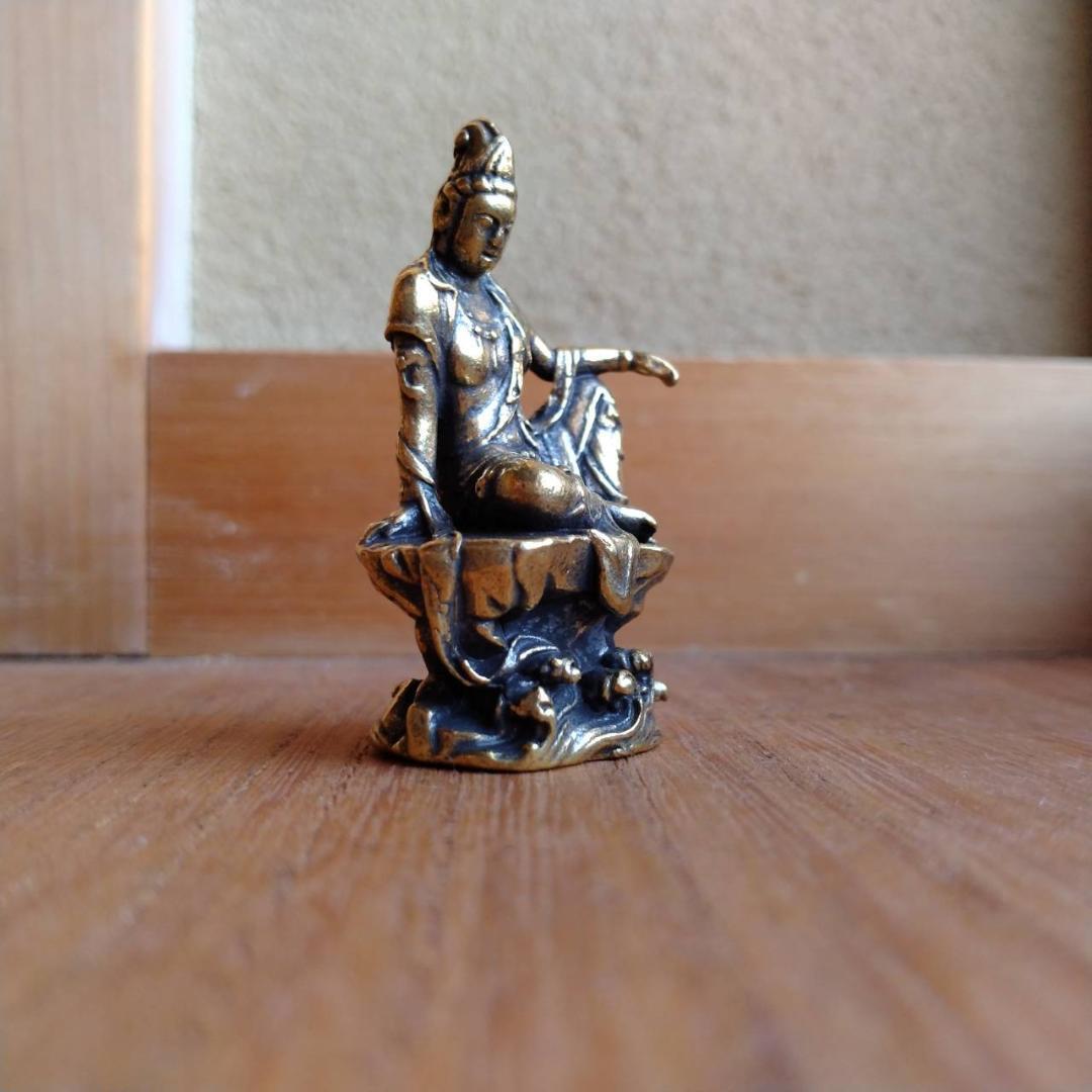 水月観音菩薩 仏像 真鍮 アンティーク 置物 お守り 約5cm