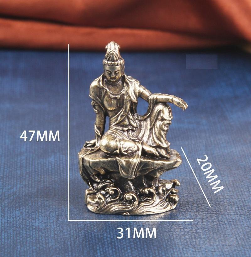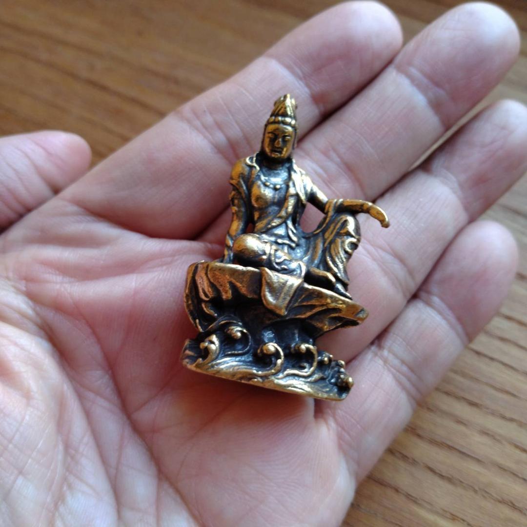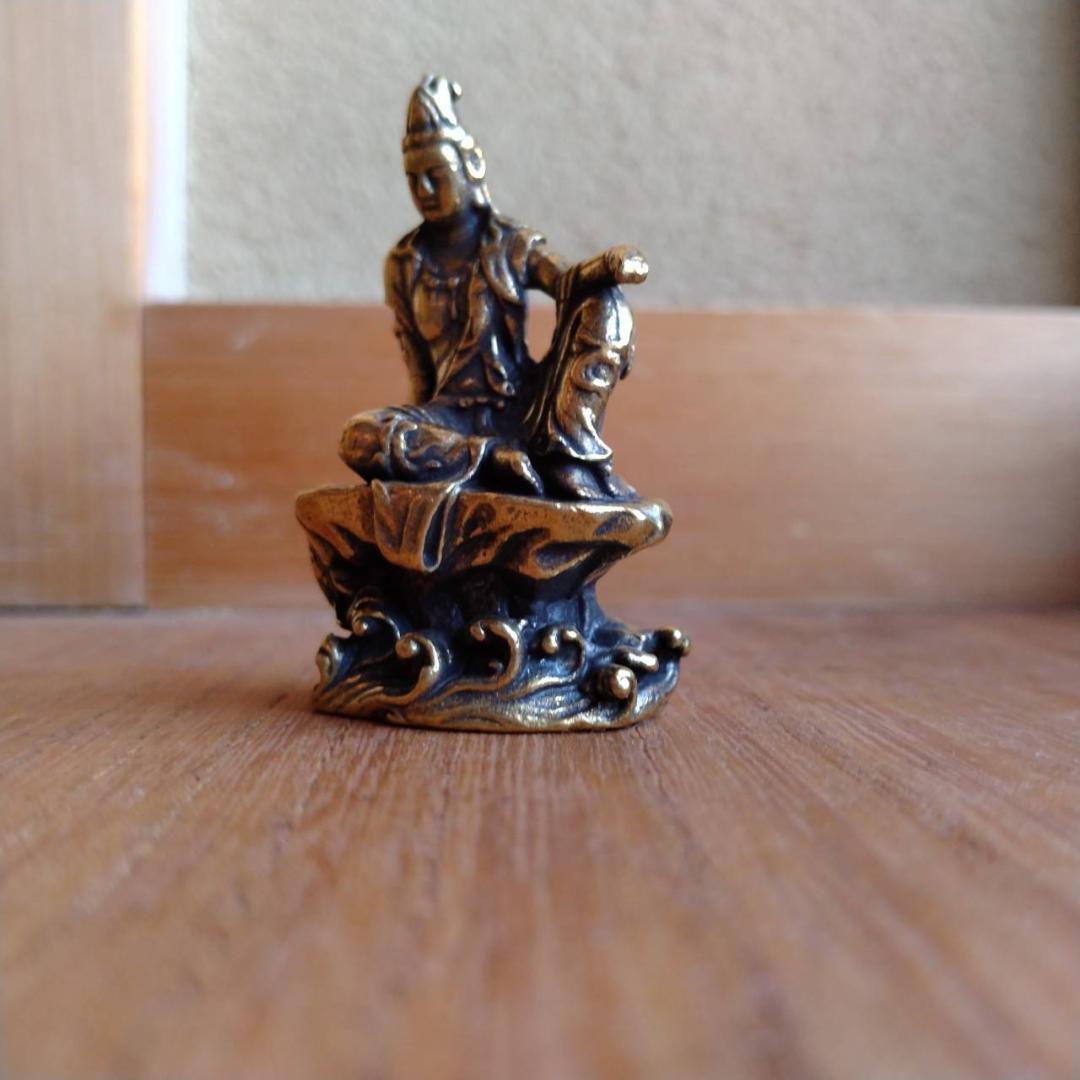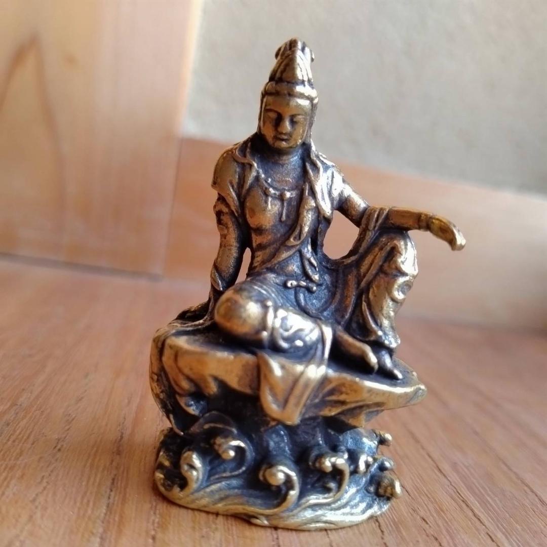 水月観音菩薩 仏像 真鍮 アンティーク 置物 お守り 約5cm