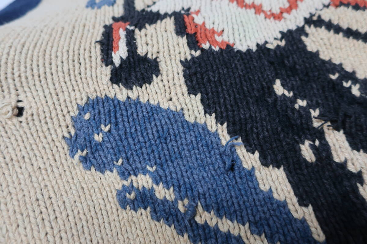 程度:全体的に汚れやシミが多く見受けられ、シワ、ヨレ、所々にほつれや穴もございます。