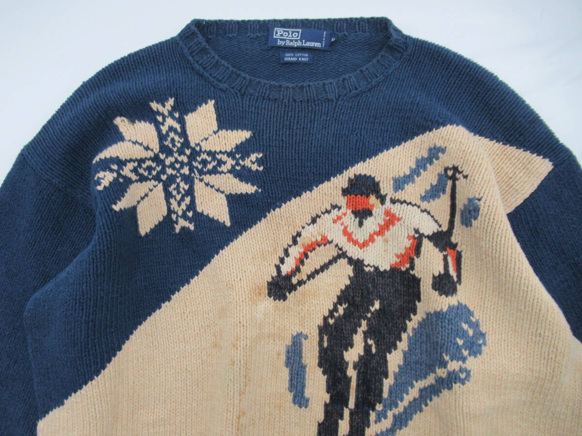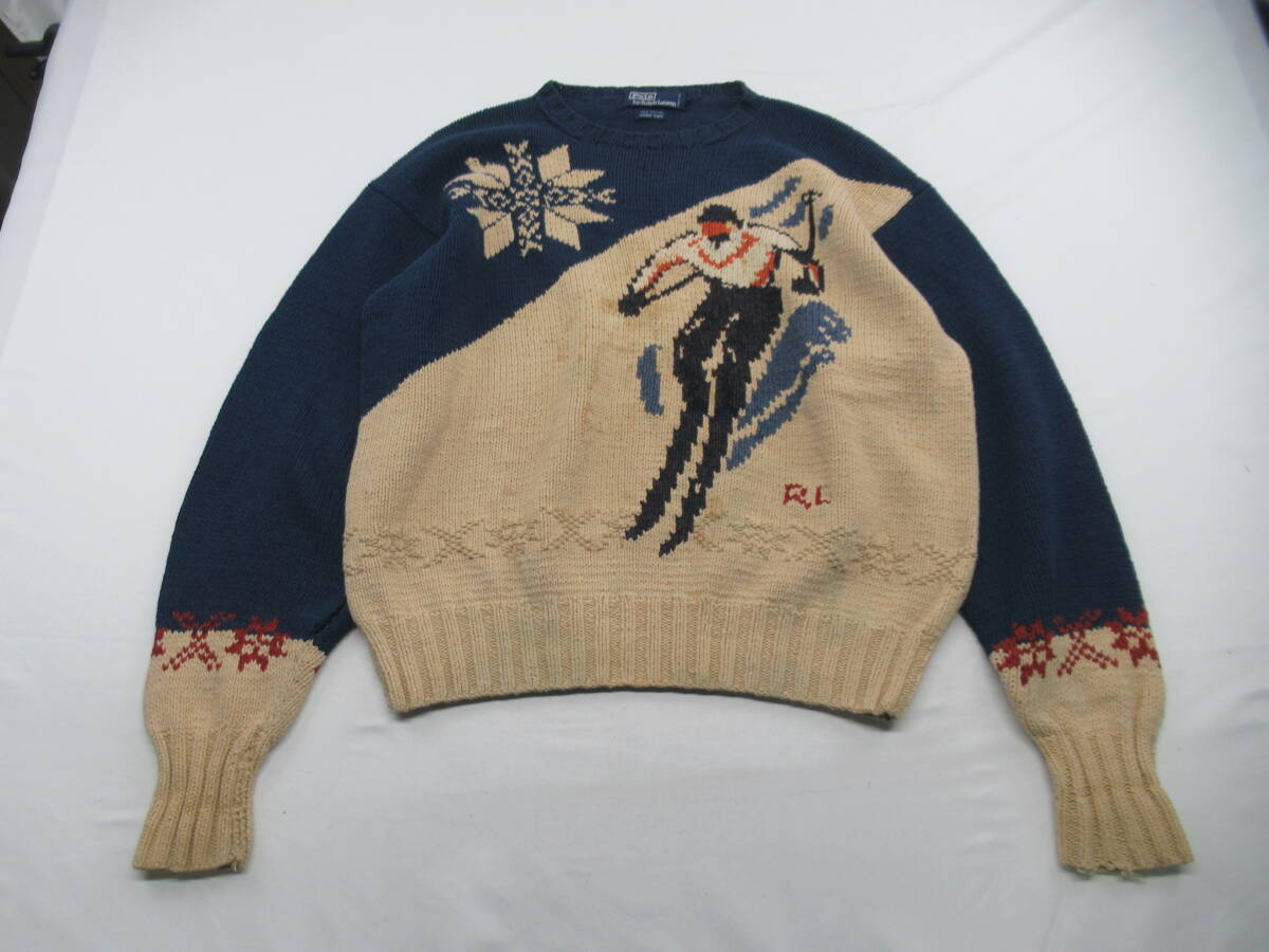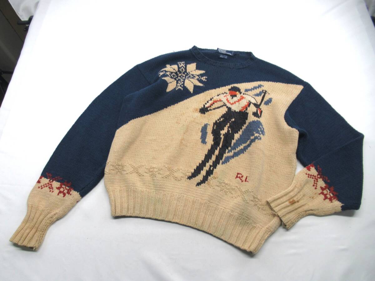【送900円】1386 インポート古着 Polo by Ralph Lauren ポロバイラルフローレン 総柄ニット セーター ノルディック スキー XL