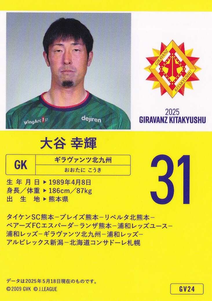 ギラヴァンツ北九州 2025 オフィシャル GV24 大谷幸輝 パラレル版