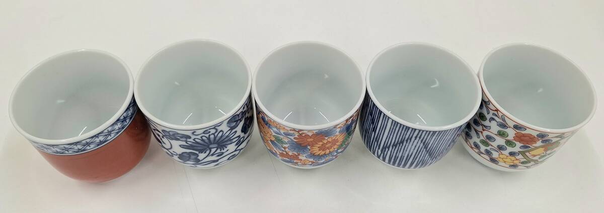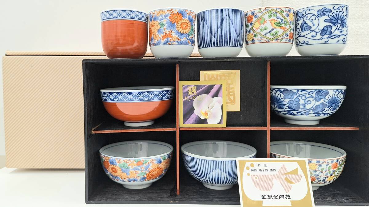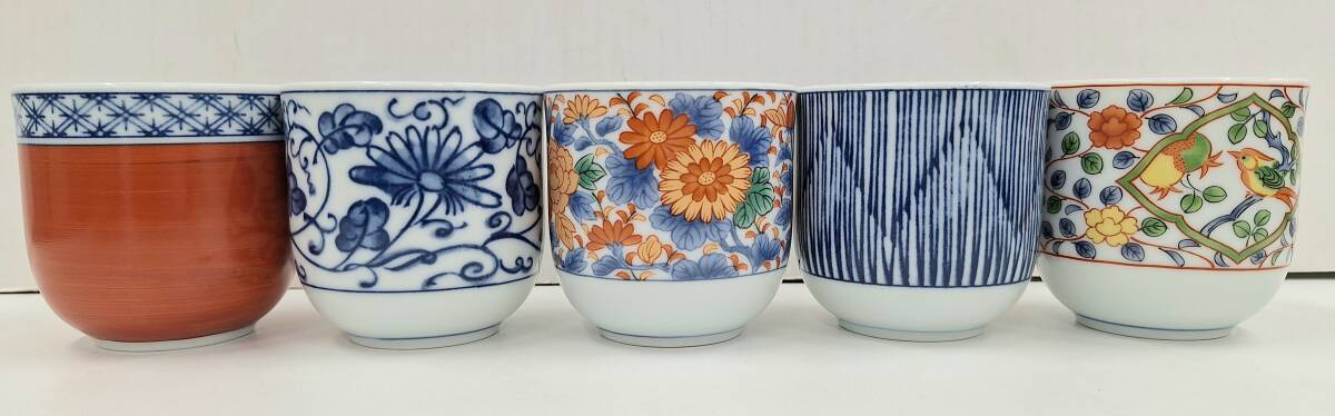 IY86246E 三洋陶器 龍峰窯 絵変わり食卓の友 茶碗・湯呑5客セット 食器 和食器 陶磁器 硝子器 花柄 伝統工芸 棚付き 現状品