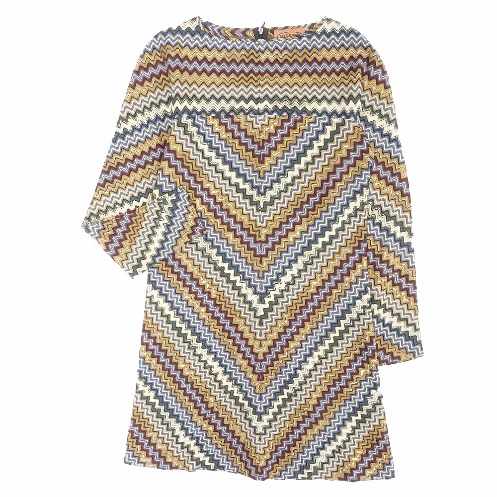 【Vintage MISSONI ミッソーニ 総柄 ジグザグ ワンピース 長袖 ウール イタリア製 サイズ40 M マルチカラー レディース】 | |