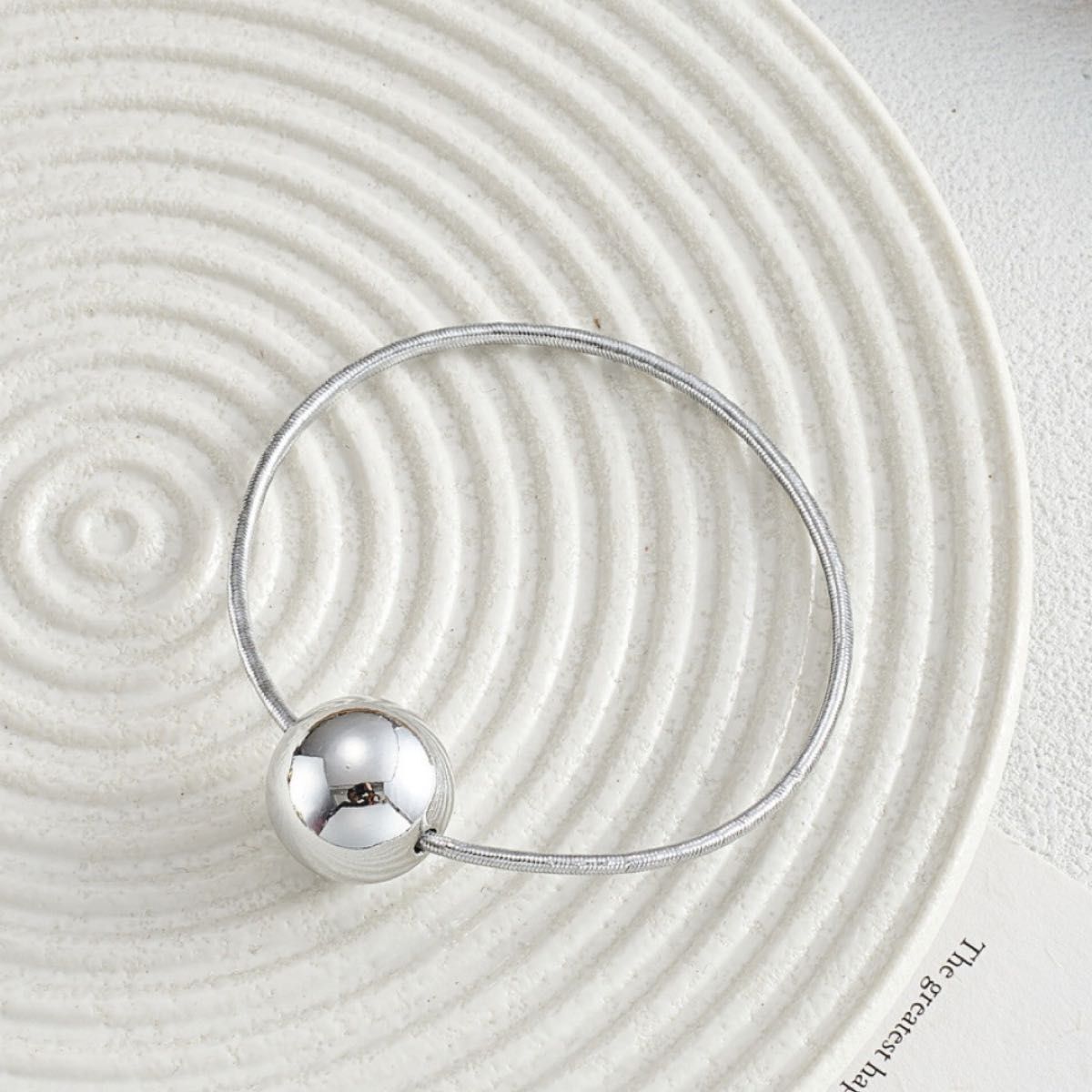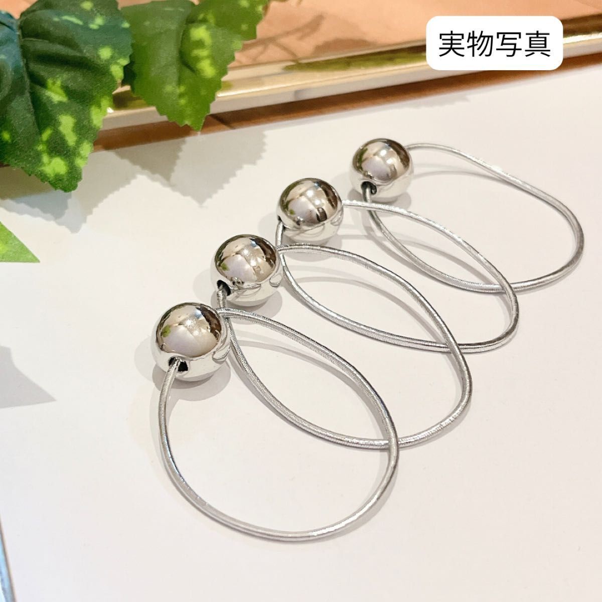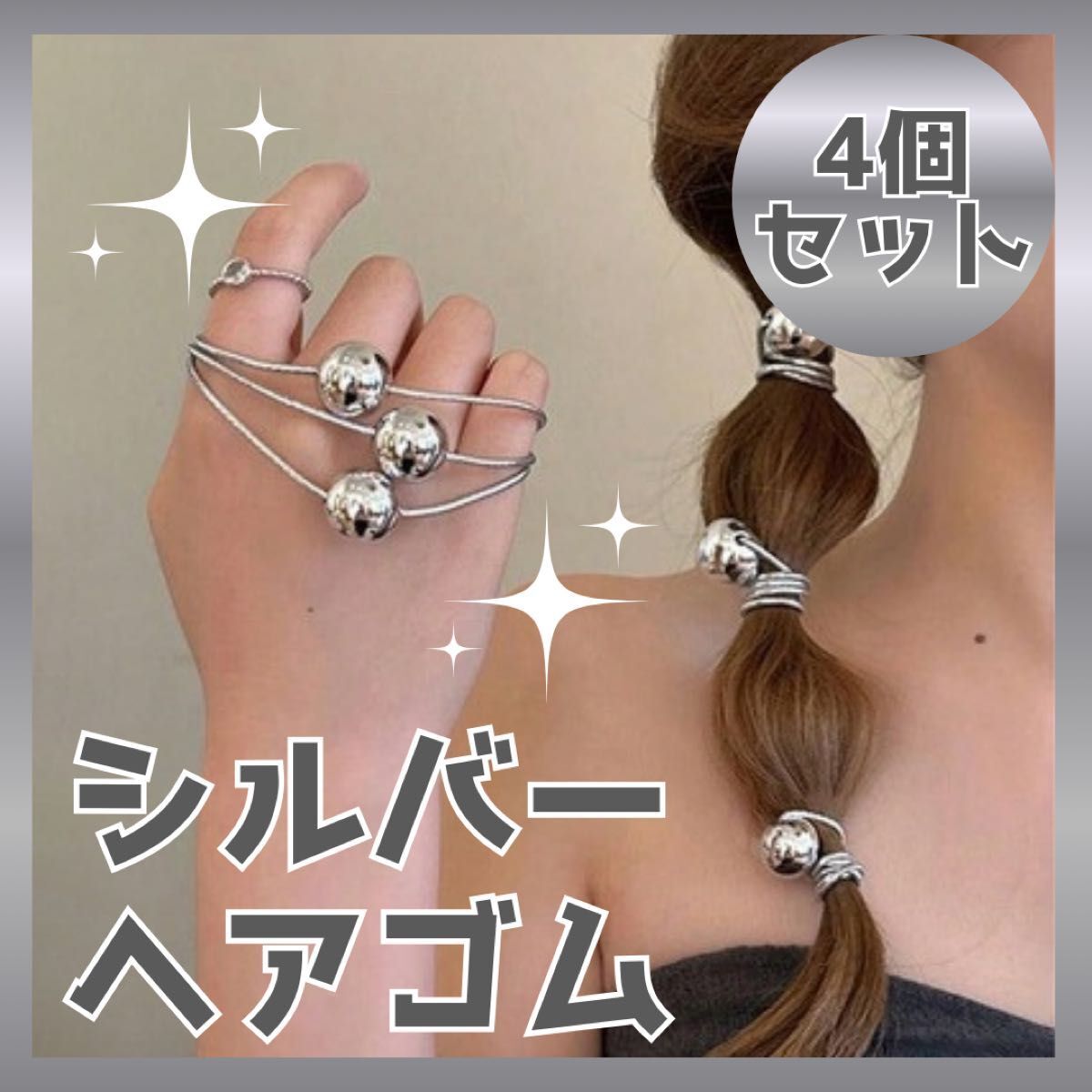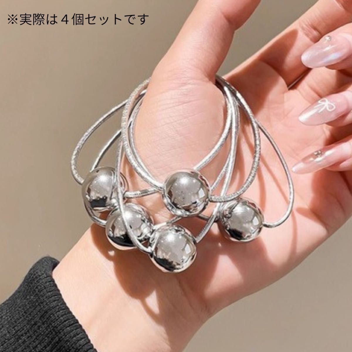 ヘアゴム 4個セット シルバー Y2K プラスチック スーパーシャイニー ラウンドボール レザーバンド 女性用 高弾力性 耐久性 ポニーテール ヘアタイ ヘアアクセサリー