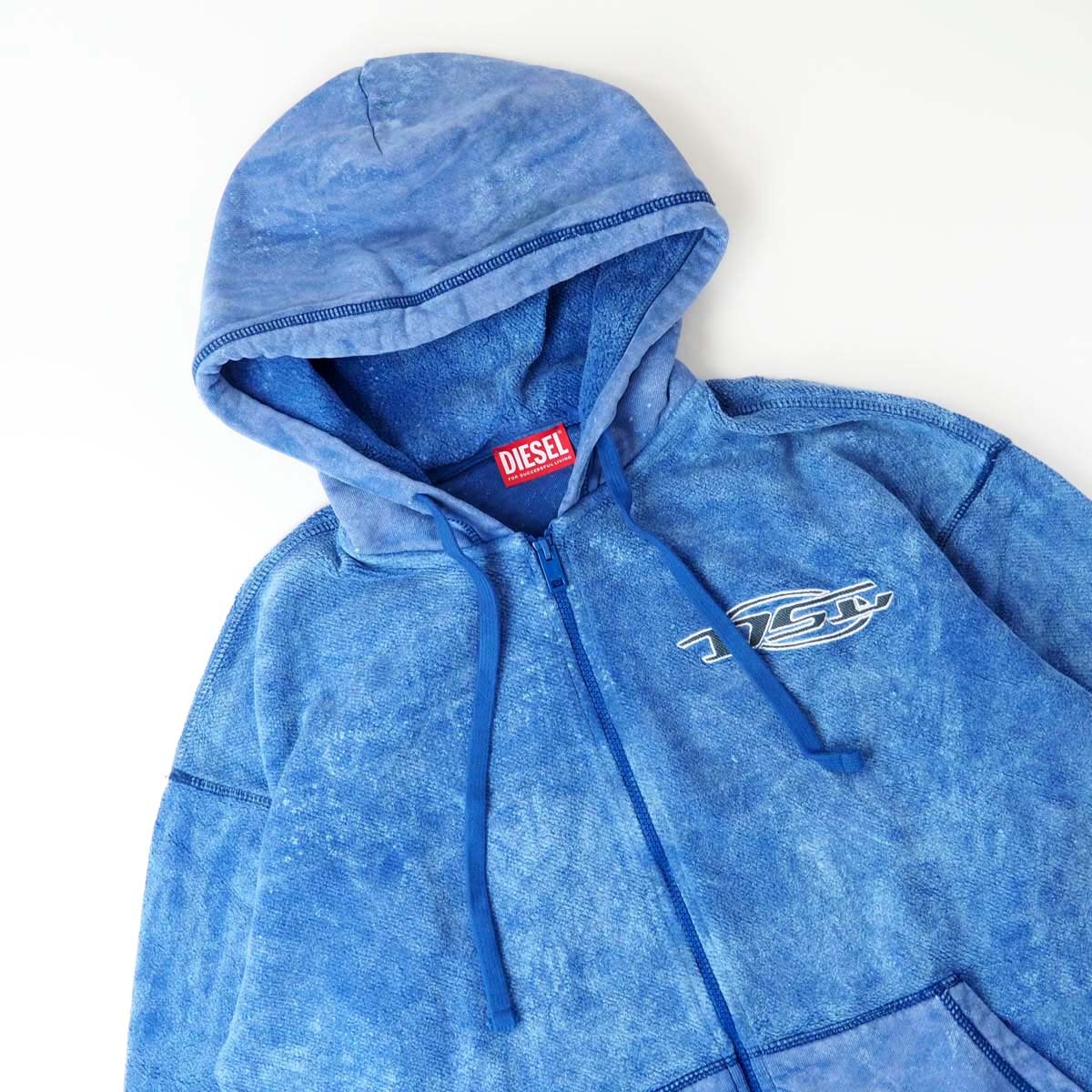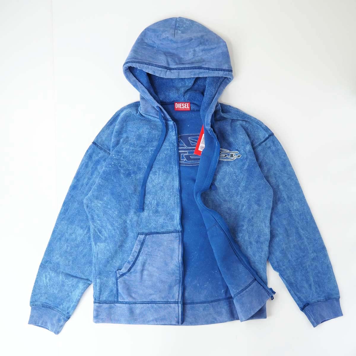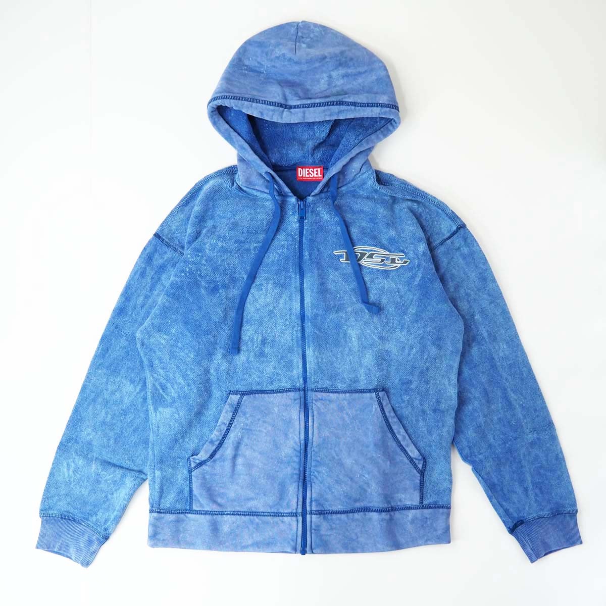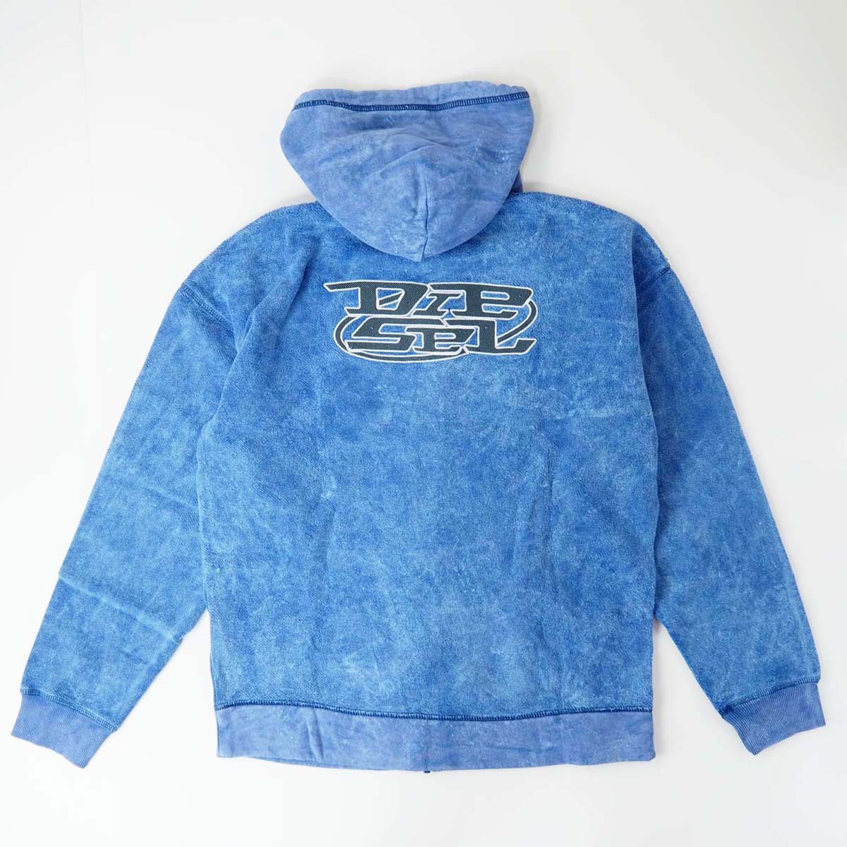 新品正規品 DIESEL ディーゼル S-ORS-HOOD-ZIP メンズ アシッドウォッシュ ロゴ刺繍 ジップ パーカー ブルー L