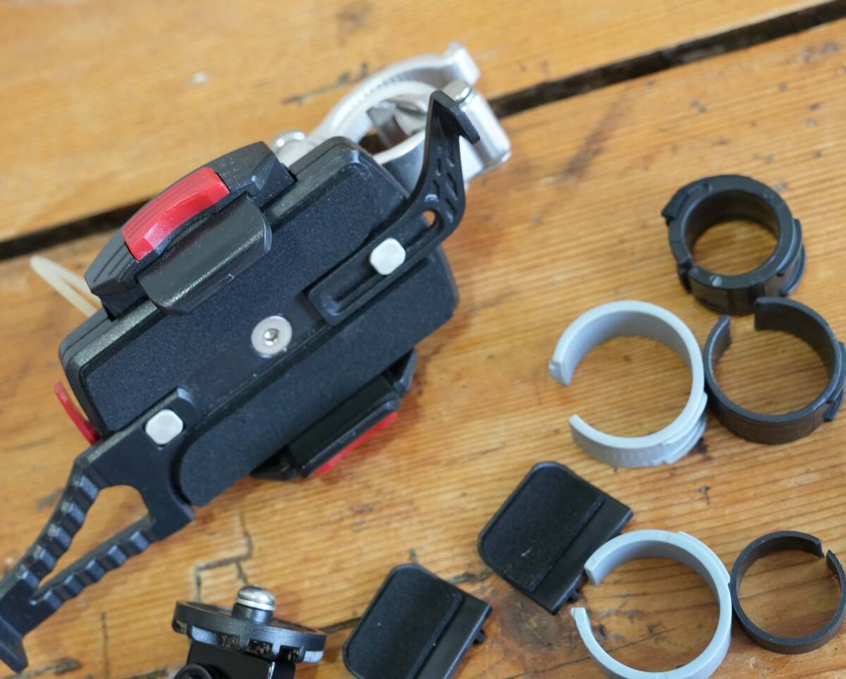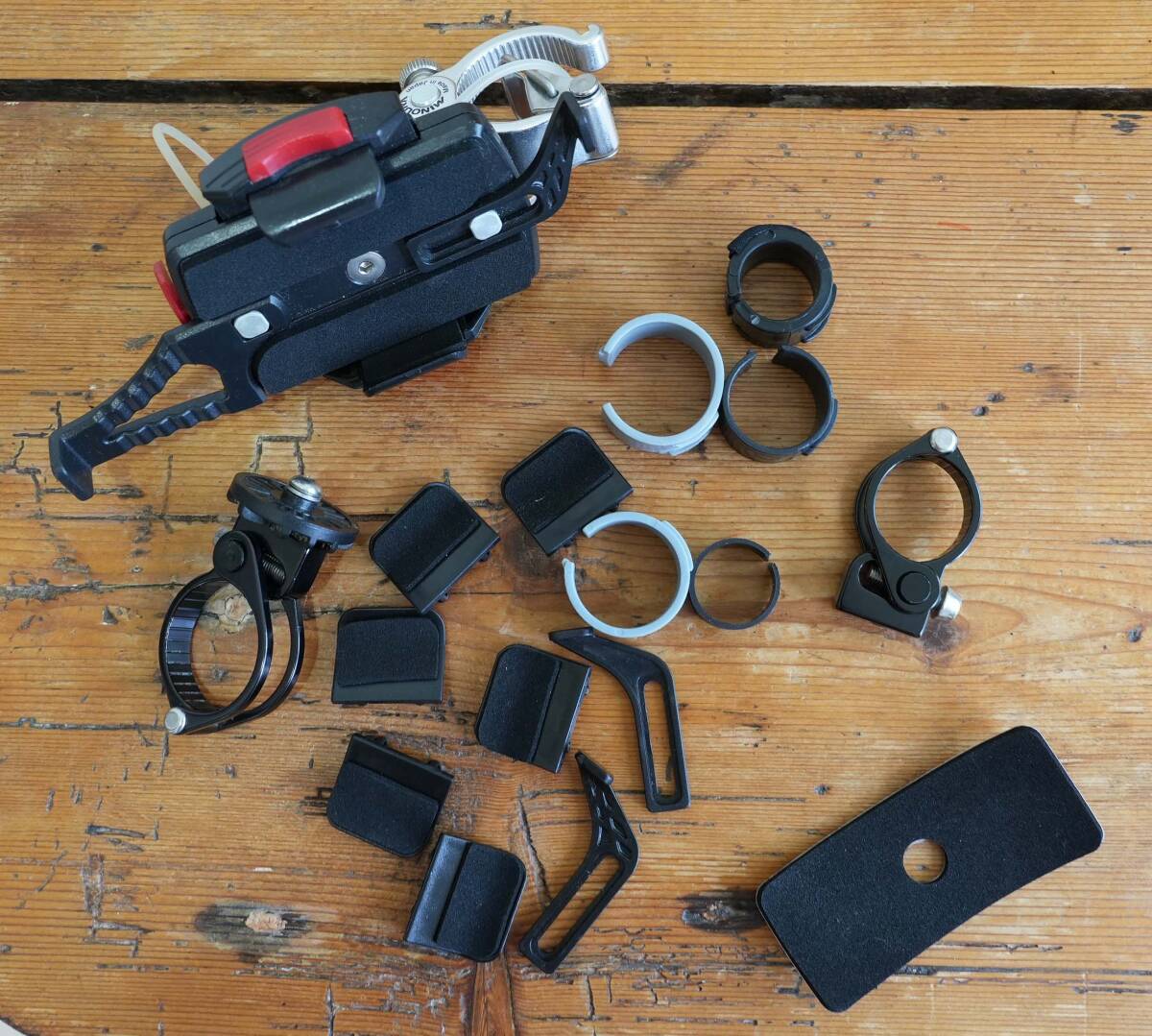 ミノウラ(MINOURA) 自転車 スマホホルダーとたくさんの付属関連部品です。