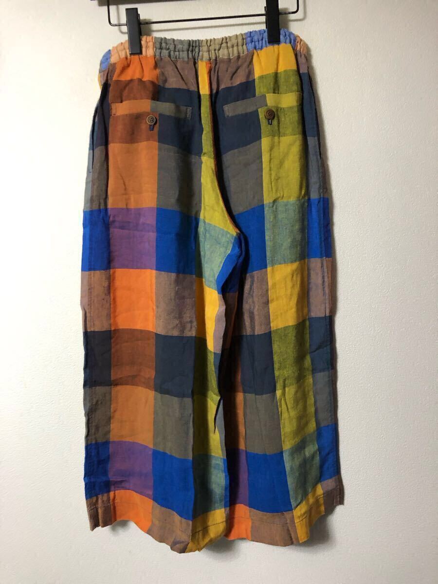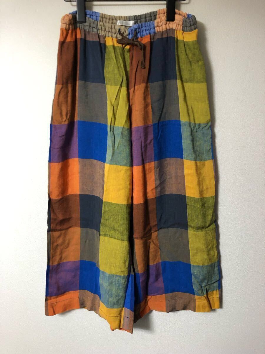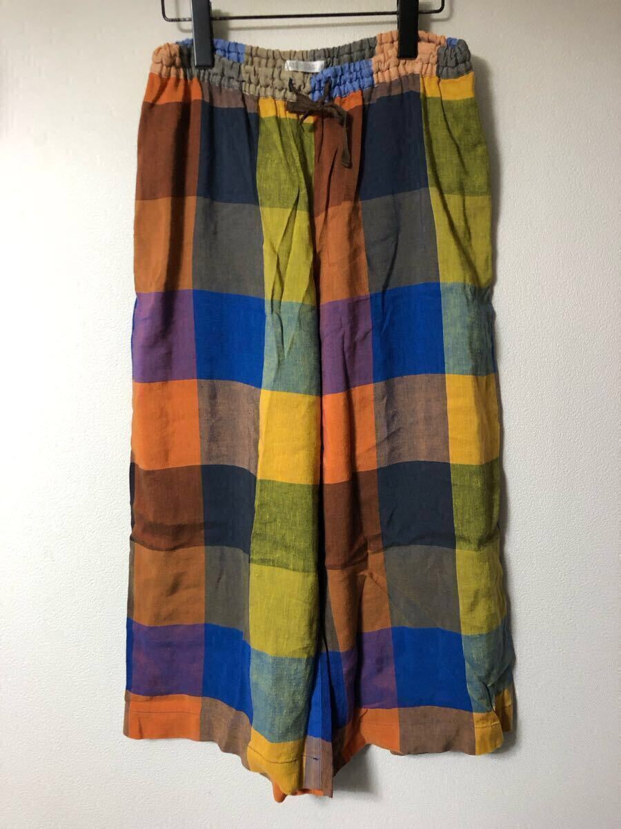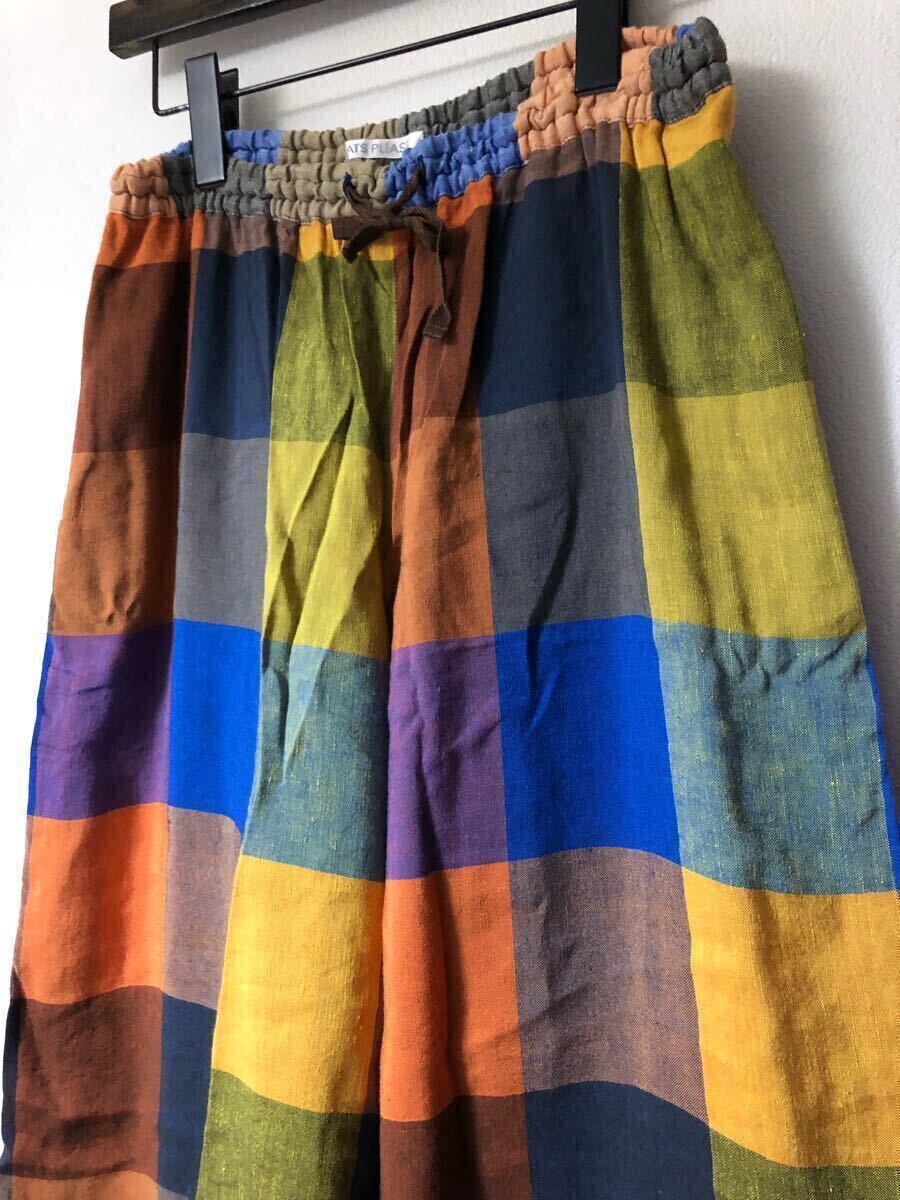 表情豊かなリネンに鮮やかなチェックの、4ポケットパンツです。