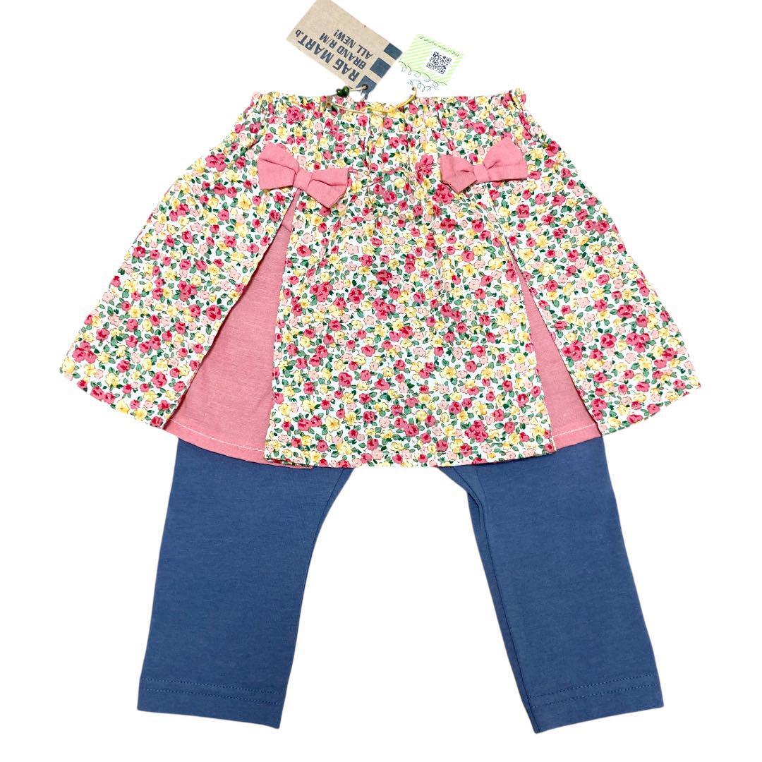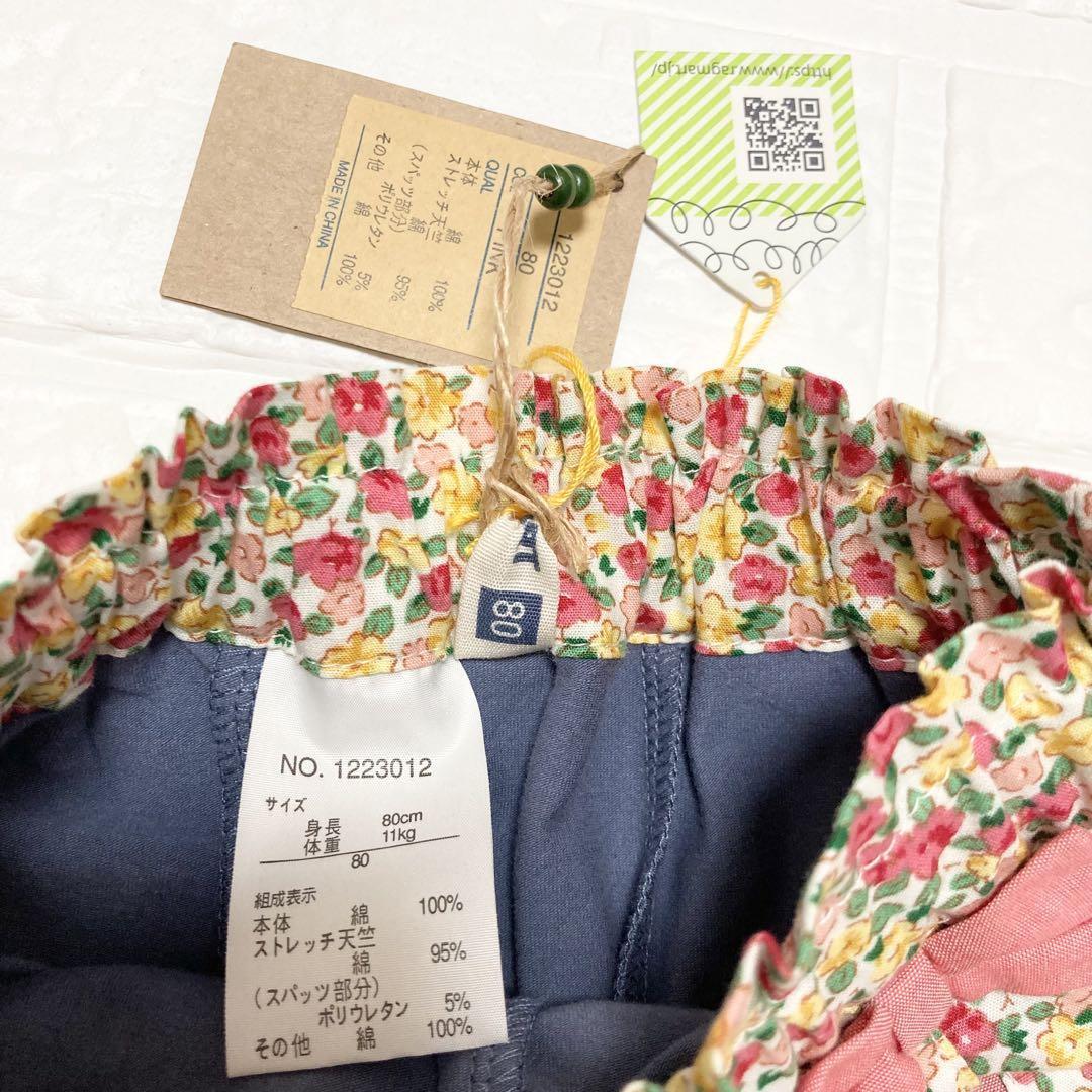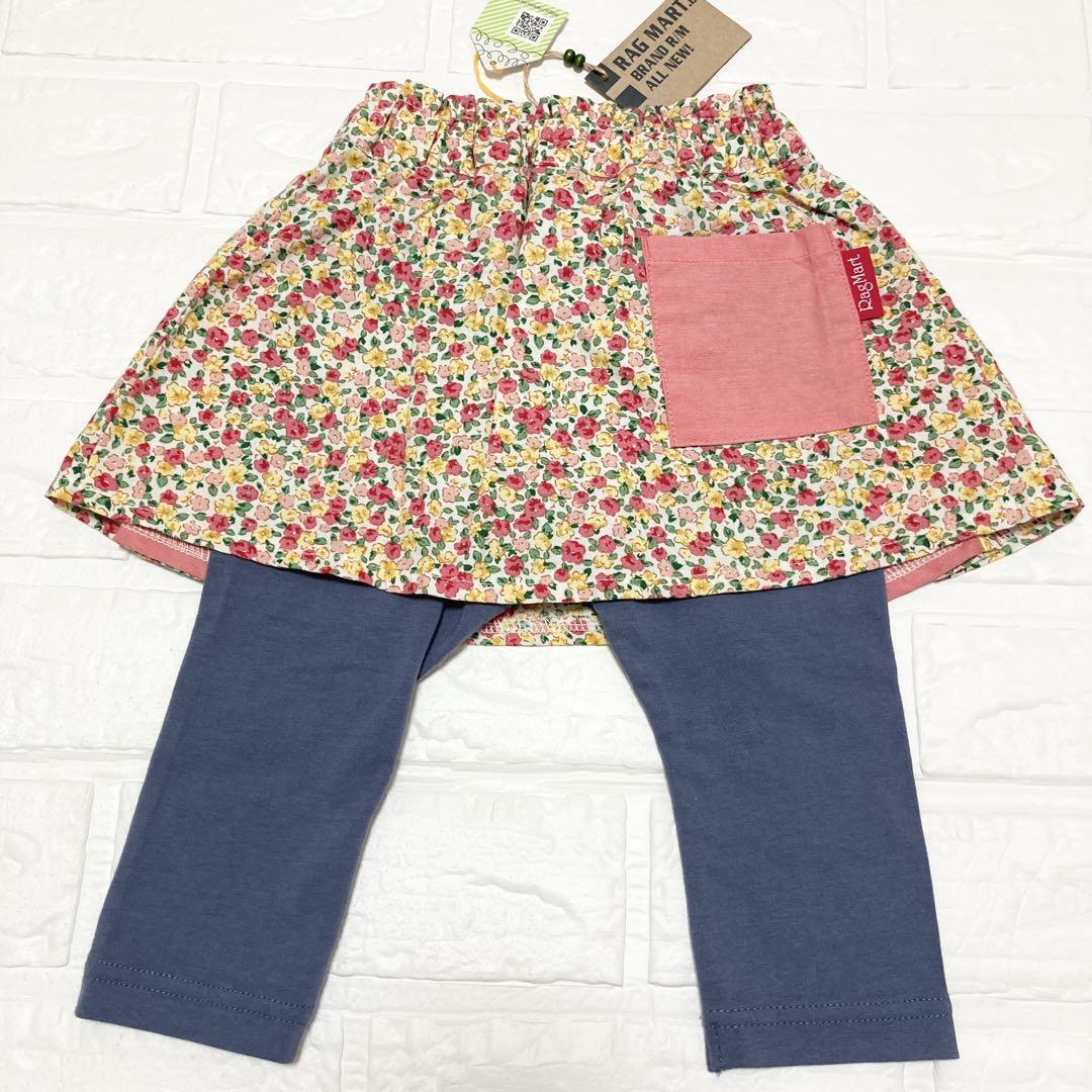 【新品未使用タグ付き】ベビー服ラグマートのとても可愛い花柄のスカパンです。スカートとレギンスがドッキングしています。後ろにはRAGMARTのロゴがあります。