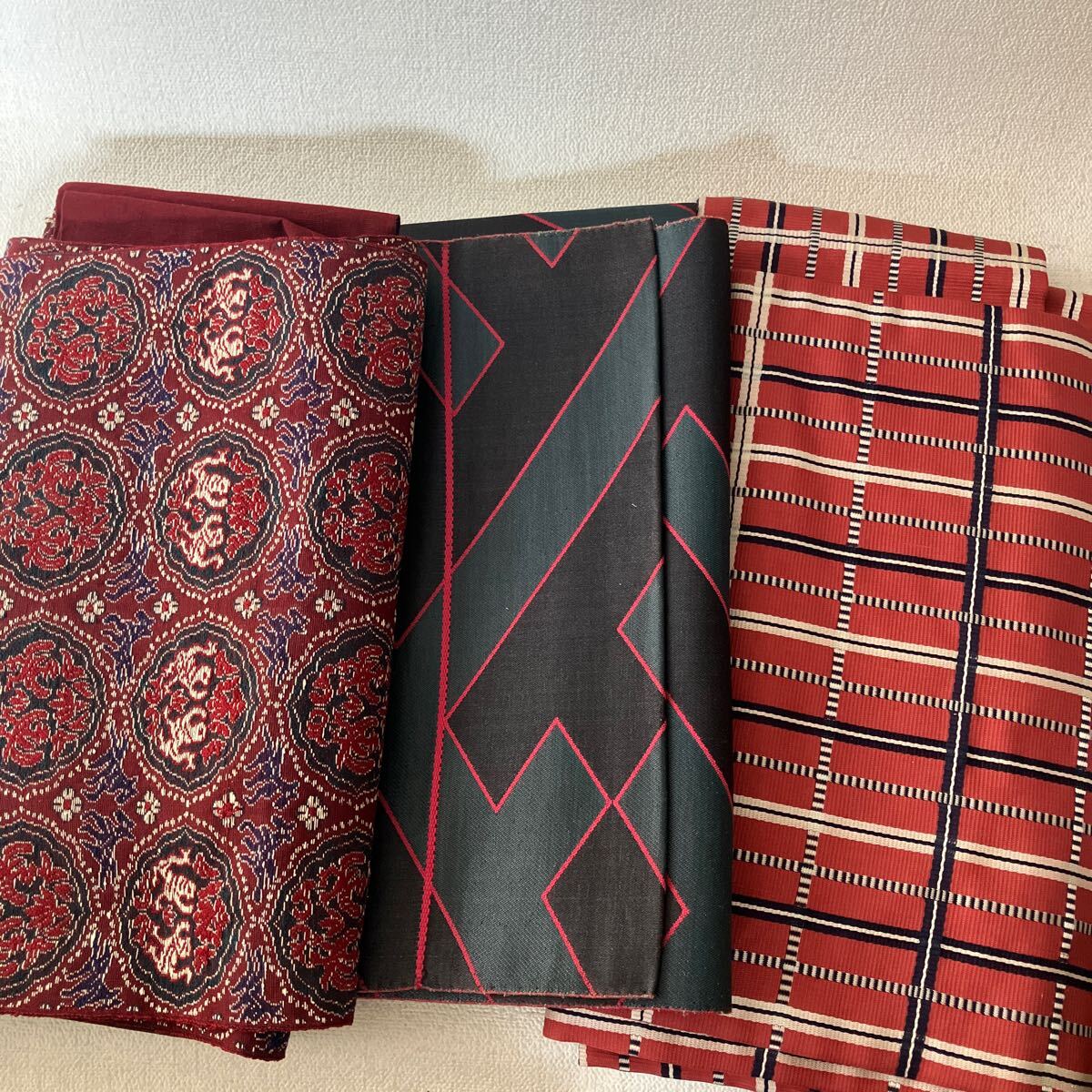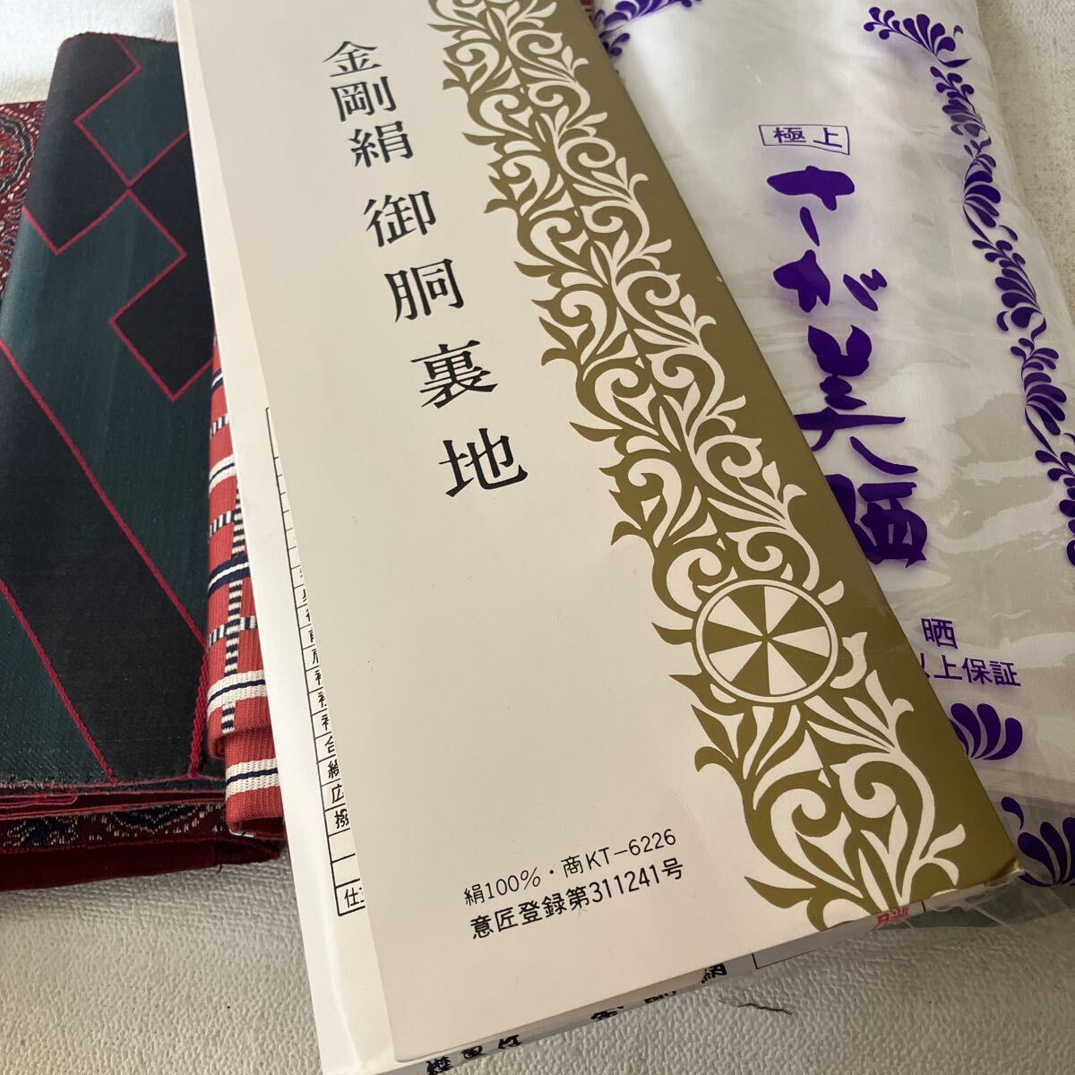 c1127 80 和装 金剛絹 御胴裏地 極上さが美晒 綿100% 帯3点 まとめて セット 和服 着物 レトロ柄 反物 リメイク 和風 生地 色褪せ有り