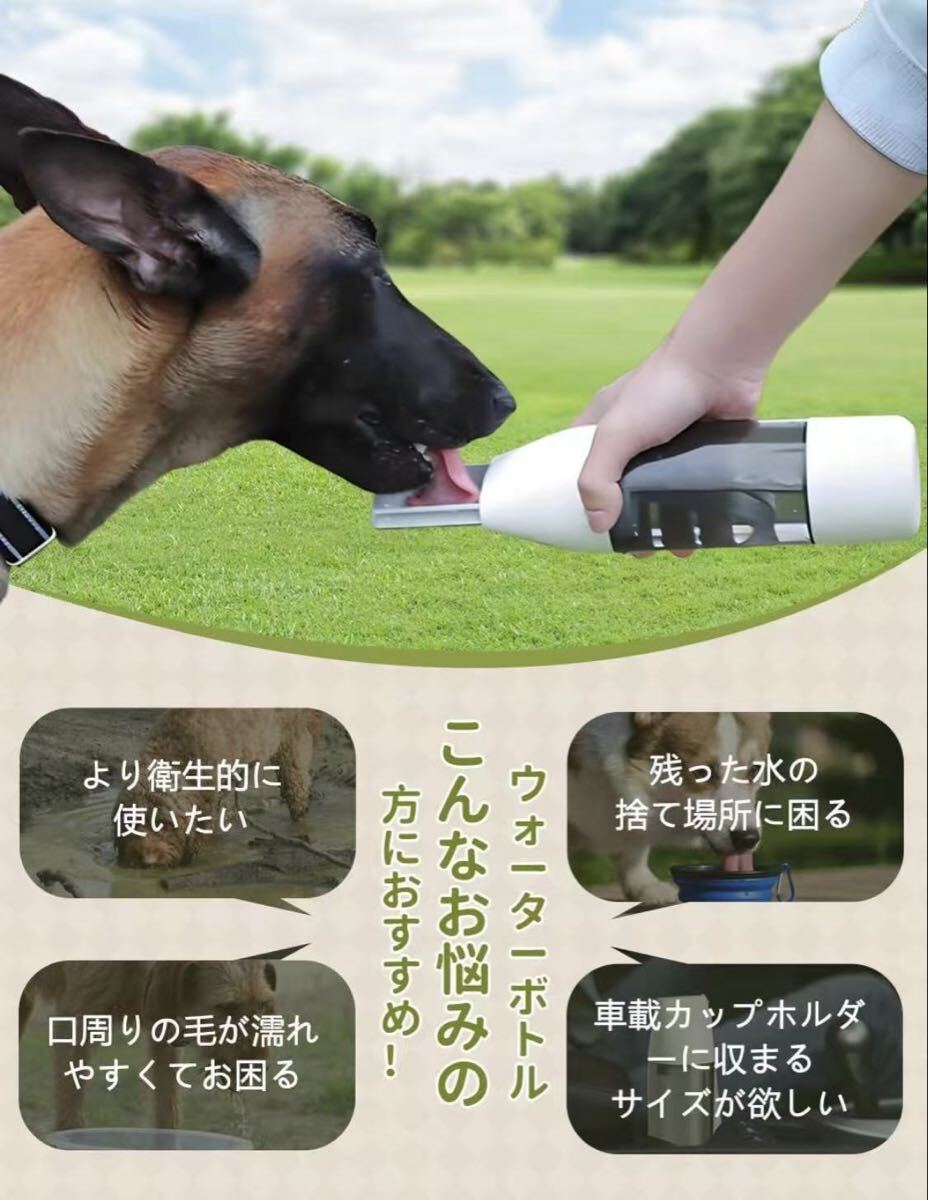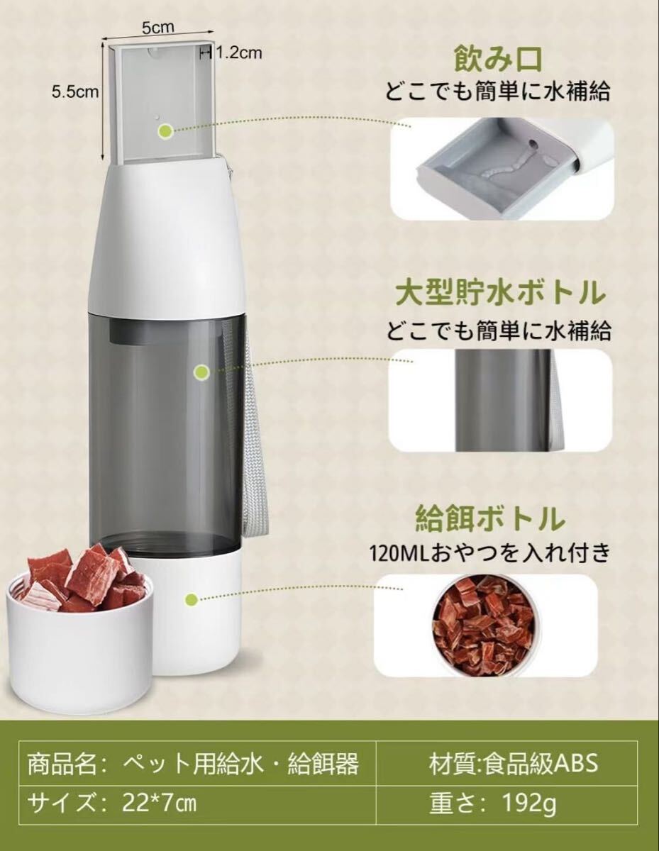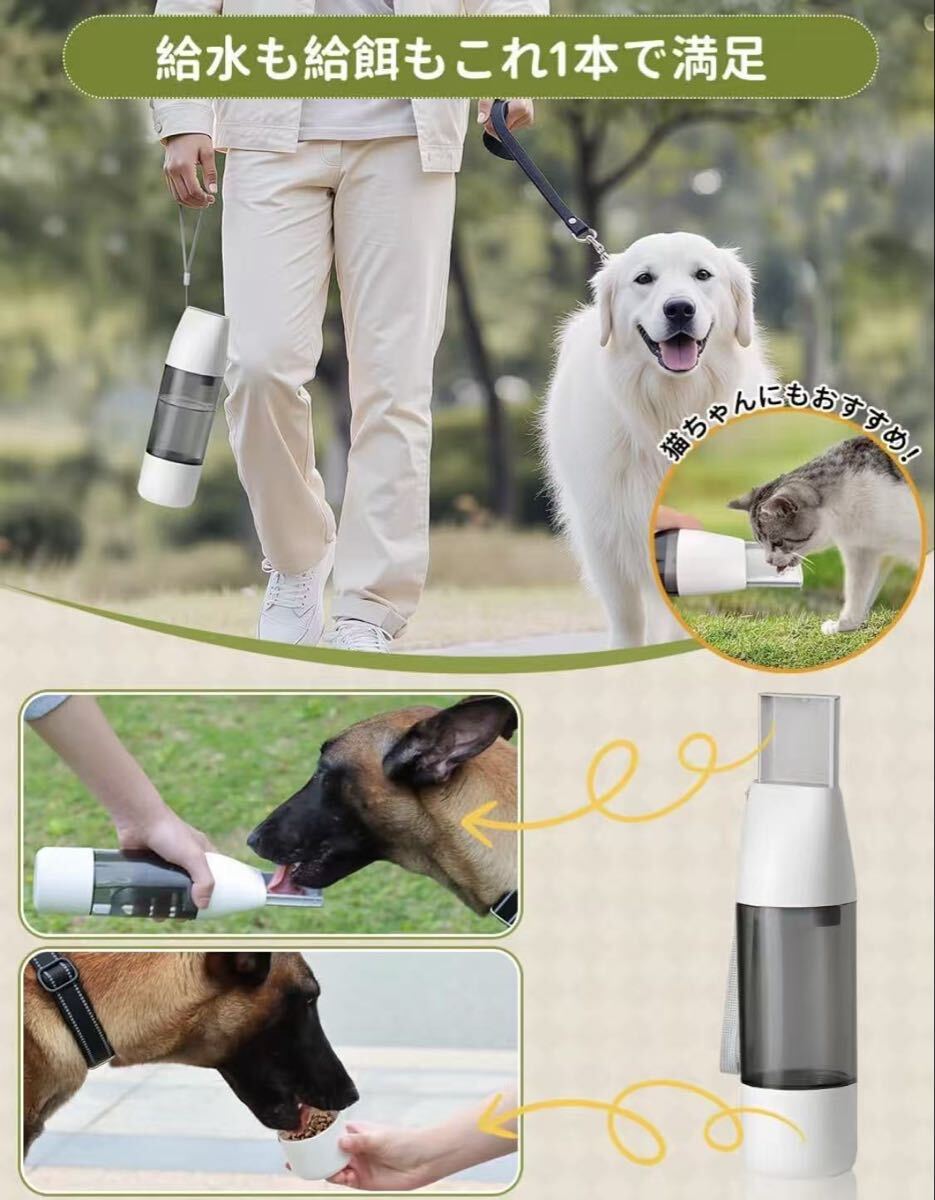 ペットウォーターボトル 犬 水筒 給水器 餌やり 押し込みポップアップ式 ペット用水飲みボト 犬グッズ お散歩用水筒 犬 水入れ 旅行 ペット 車 用品 み ず 持ち運び 携帯 猫水 餌 漏れ防止(350ml+120ml)