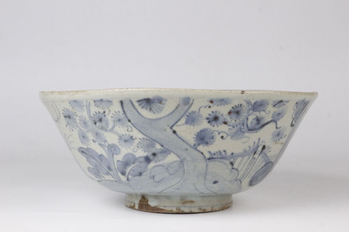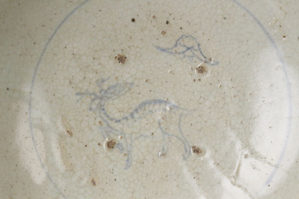 * * * 商品詳細 * * * ここでしか出逢うことのできない唯一の美をご紹介させて頂きます。 明時代末期に中国南方の福建省 州窯で焼成された呉須染付のお品でございます。 自由に伸び伸びと描かれた人物と鹿の絵付は趣に溢れています。州窯で焼かれた作品特有の 肉厚な造りがすきっりとしながらも風格の高さを醸し出しています。 まさに古来より茶人に愛された見事な逸品でございます。 この機会に是非お手元にてご堪能下さい。 ■商品内容/ 鉢、箱 ■サイズ/横23.5㎝×高10.5㎝ 箱:横27㎝×高13.5㎝×奥行27.5㎝ ■状態/スレ、傷、にゅう、窯被 箱にスレ、傷、張り物がございます。 ※写真にてご確認、ご了承の上ご入札下さい。