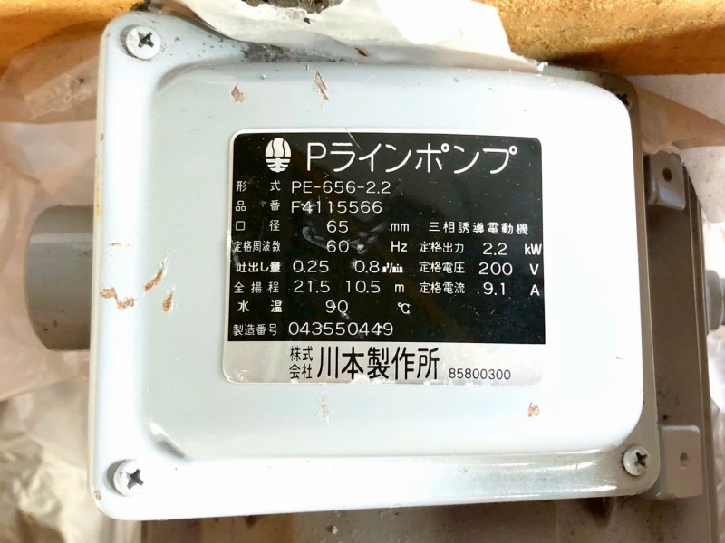 【米軍放出品】未使用品 Pラインポンプ 2.2kW 川本製作所 PE-656-2.2 渦巻ポンプ 循環ポンプ☆BI23GM-W#25