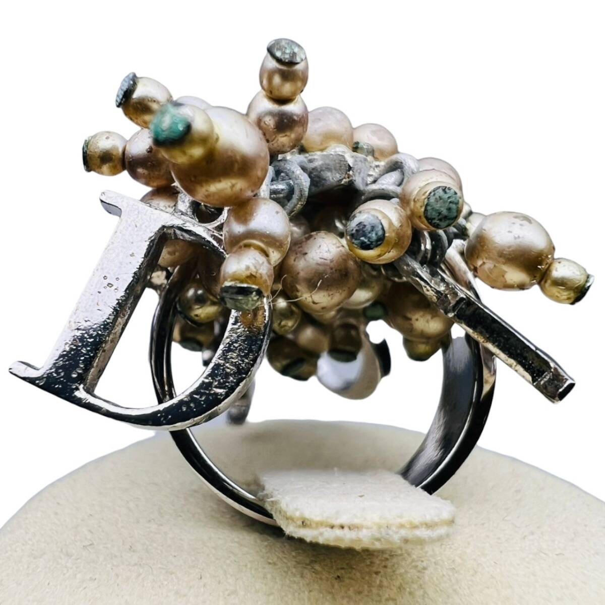 | 【良品】Dior ビーズ リング 指輪 ロゴ 刻印あり 11号 ヴィンテージ |