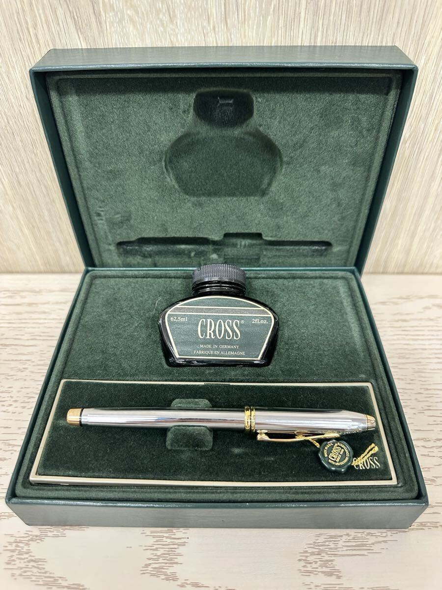 金属製のシルバーペンとインク瓶が付属したCROSSの万年筆セット。