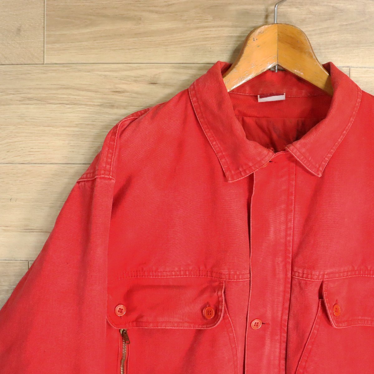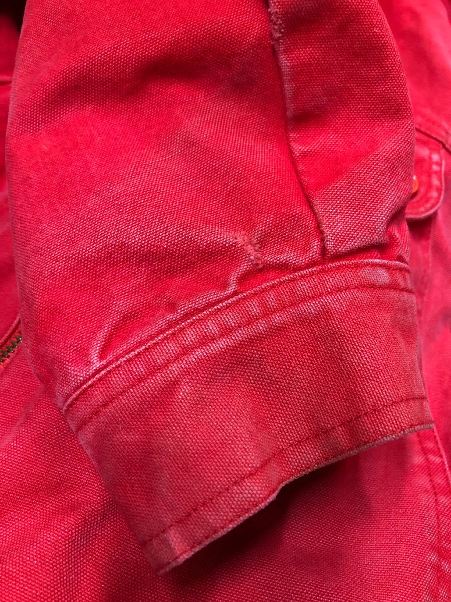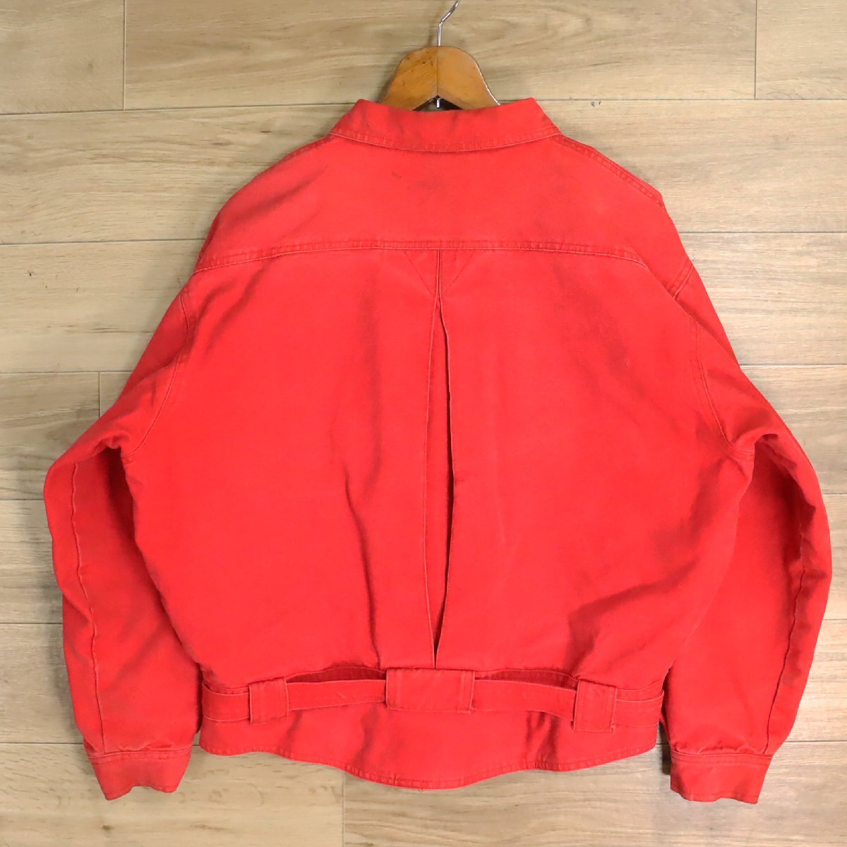 中古品です。使用感があります。全体的に色褪せ、ボディの所々と両腕と襟と裏地に薄汚れ、袖先に小さい擦れがありますが、他に大きなダメージはありません。