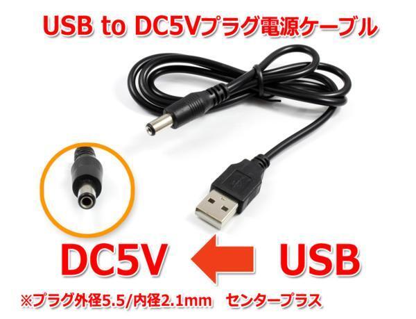 入力側はUSB A-TYPE オス、出力側はDCプラグ 外径5.5mm/内径2.1mmです。