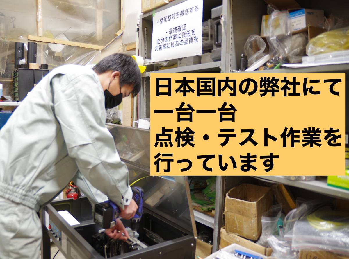 最終的な点検作業、動作確認作業を、日本国内で、技術者が行ってから、出荷いたします。