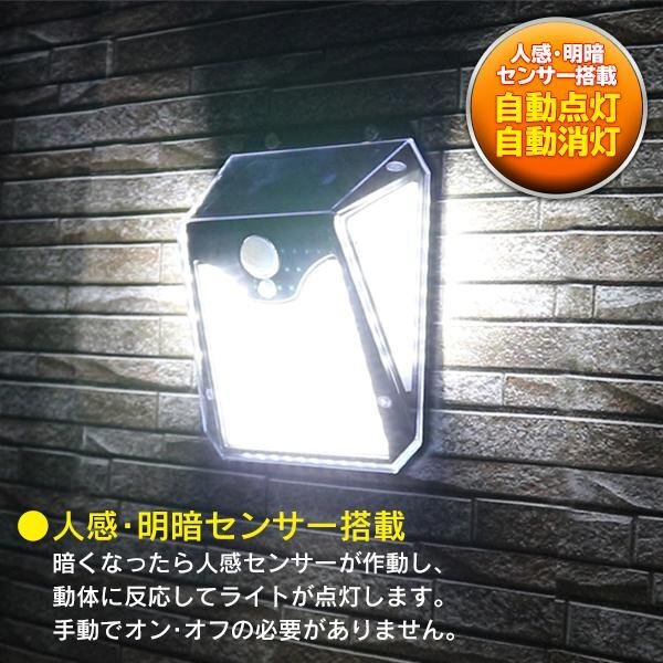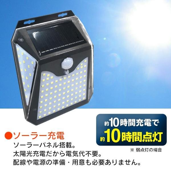 センサーライト LED 121灯 ソーラー 750lm 人感センサー 自動点灯 消灯 防雨型 3面発光 ライト 新生活 送料無料- 60N◇ 121灯ライトT
