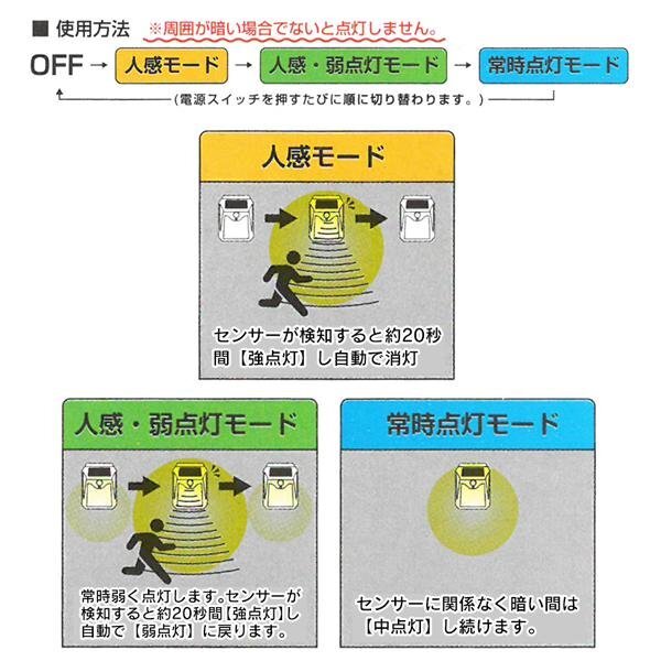 ※本製品は暗い場所でないと点灯しません。常時点灯モードでも、暗い場所でしか点灯しません。
