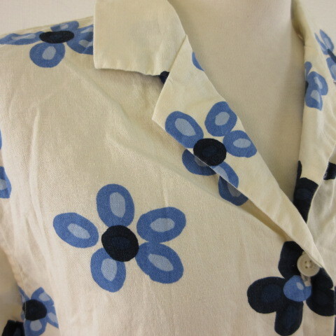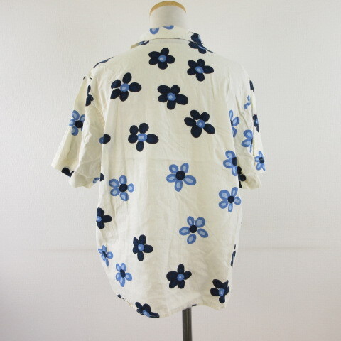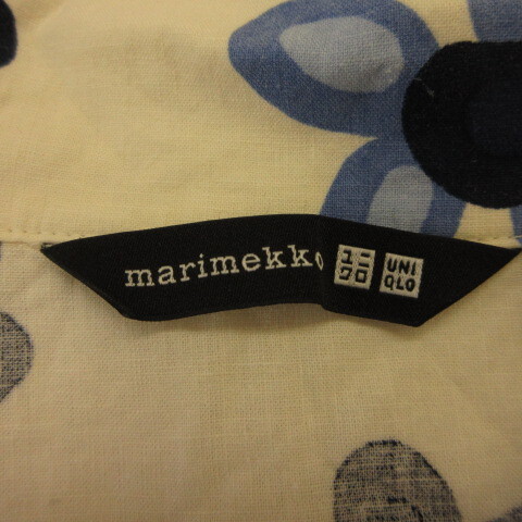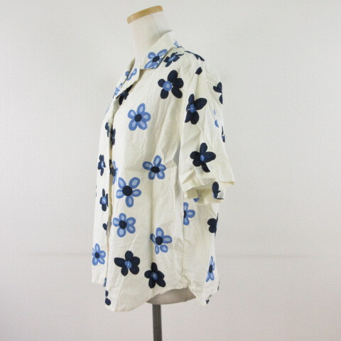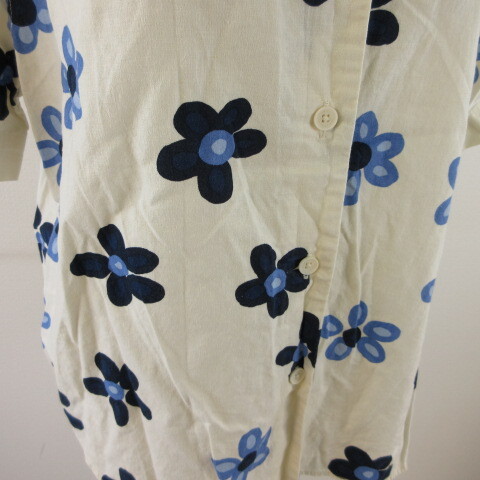 マリメッコ marimekko ユニクロコラボ オープンカラーシャツ ブラウス 半袖 花柄 リネン混 オフホワイト 白 M *T187 レディース