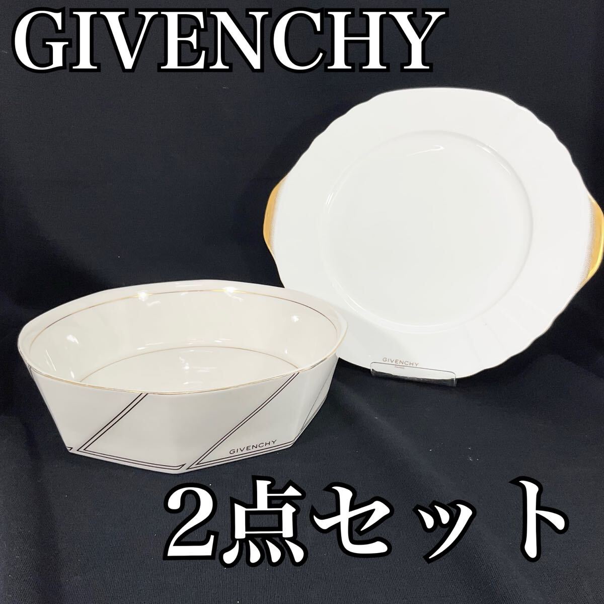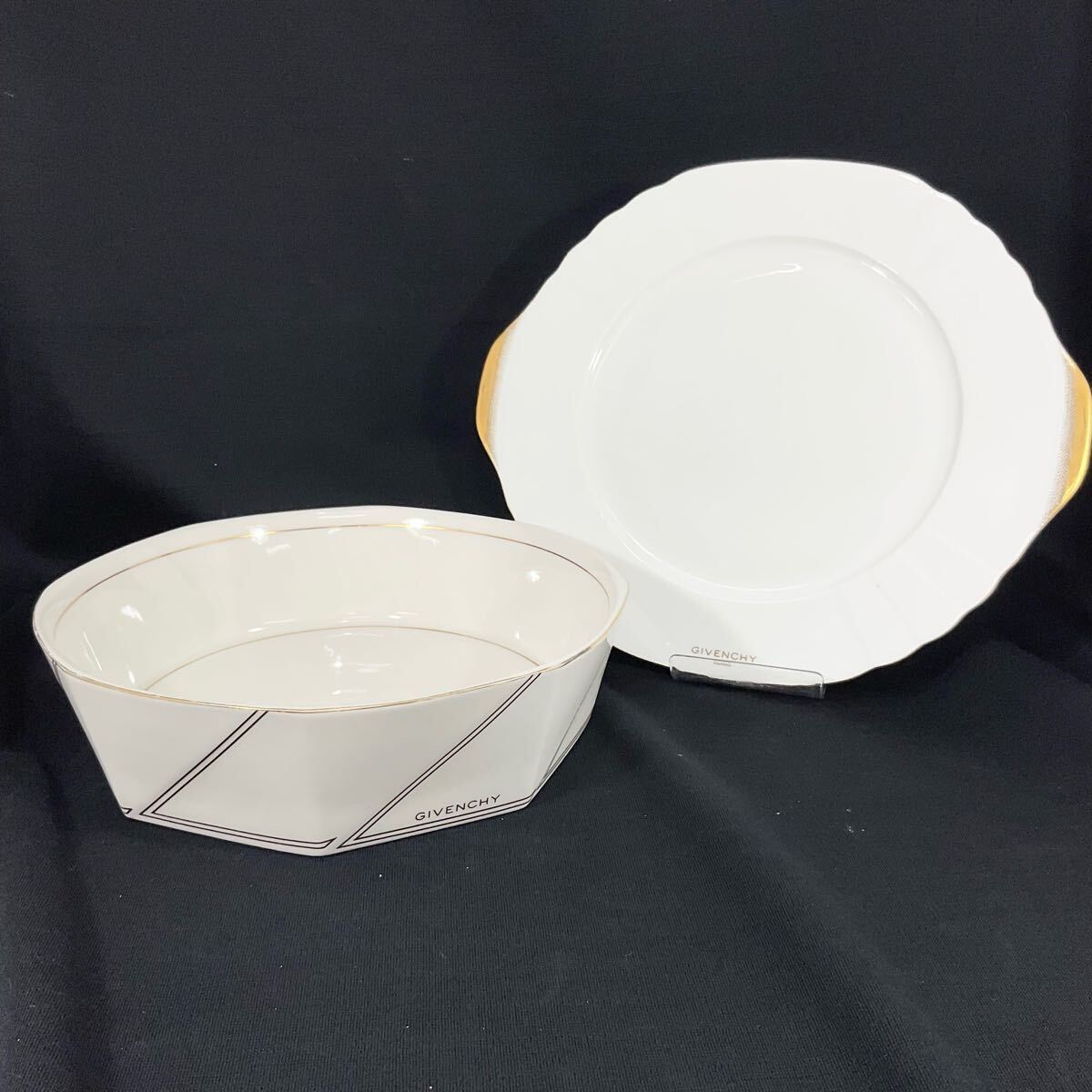 【未使用】ジバンシー 大皿 大鉢 丸皿 プレート ボウル 2点セット 金彩 金縁 洋食器 GIVENCHY (E272)