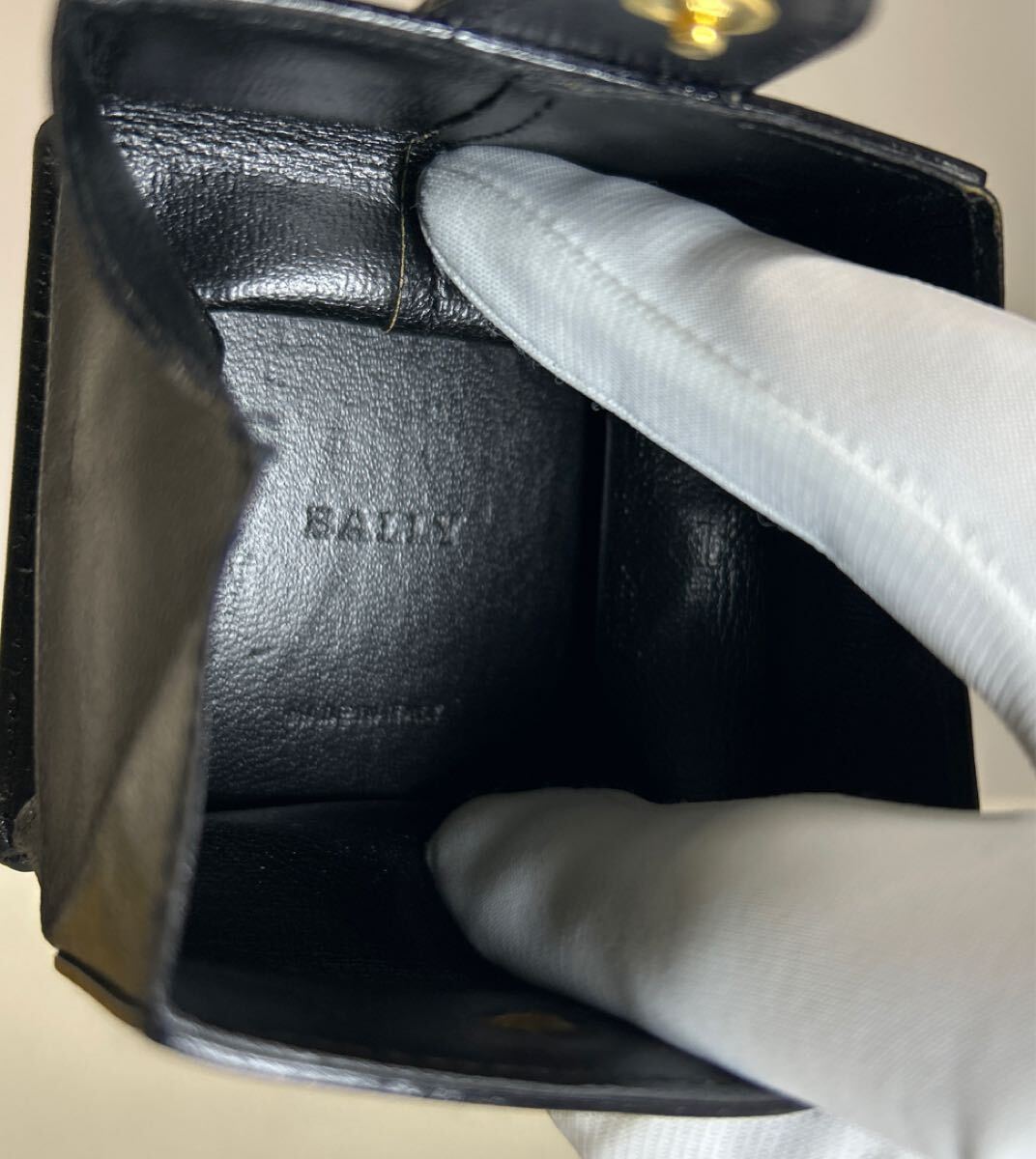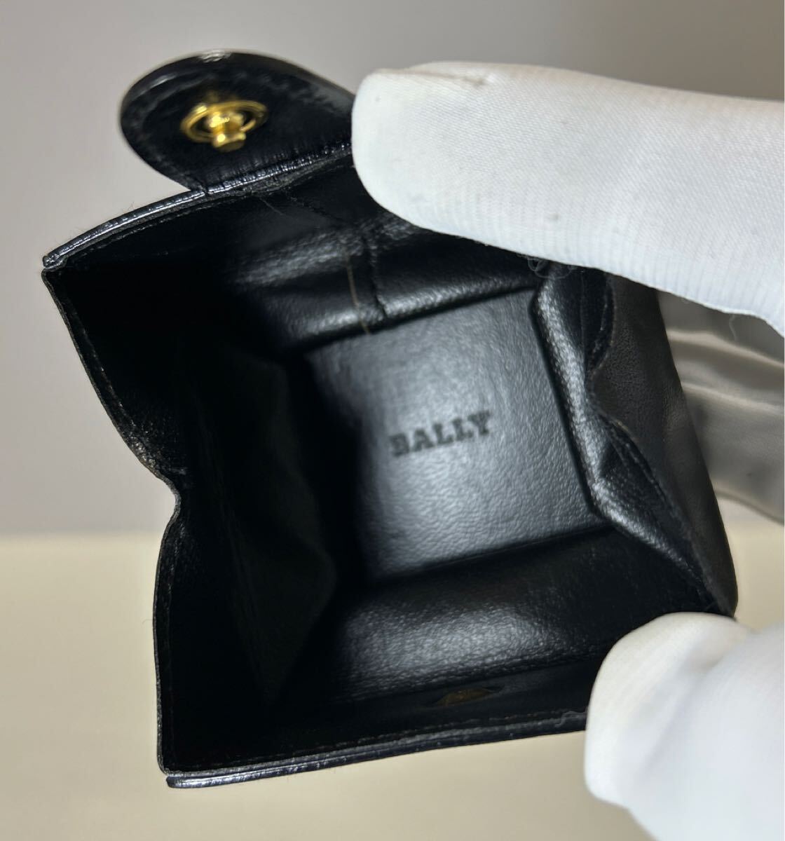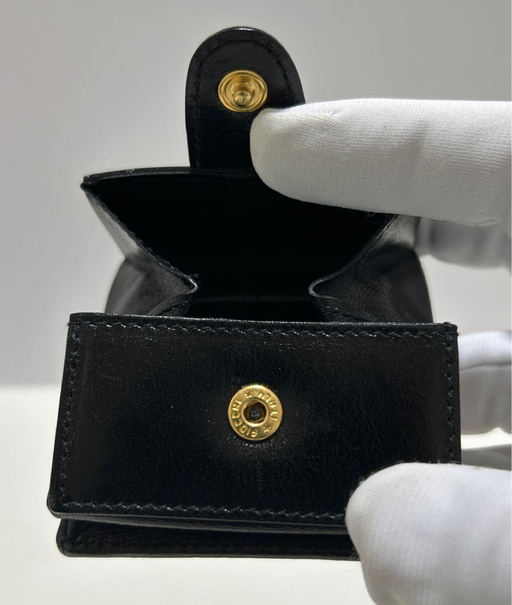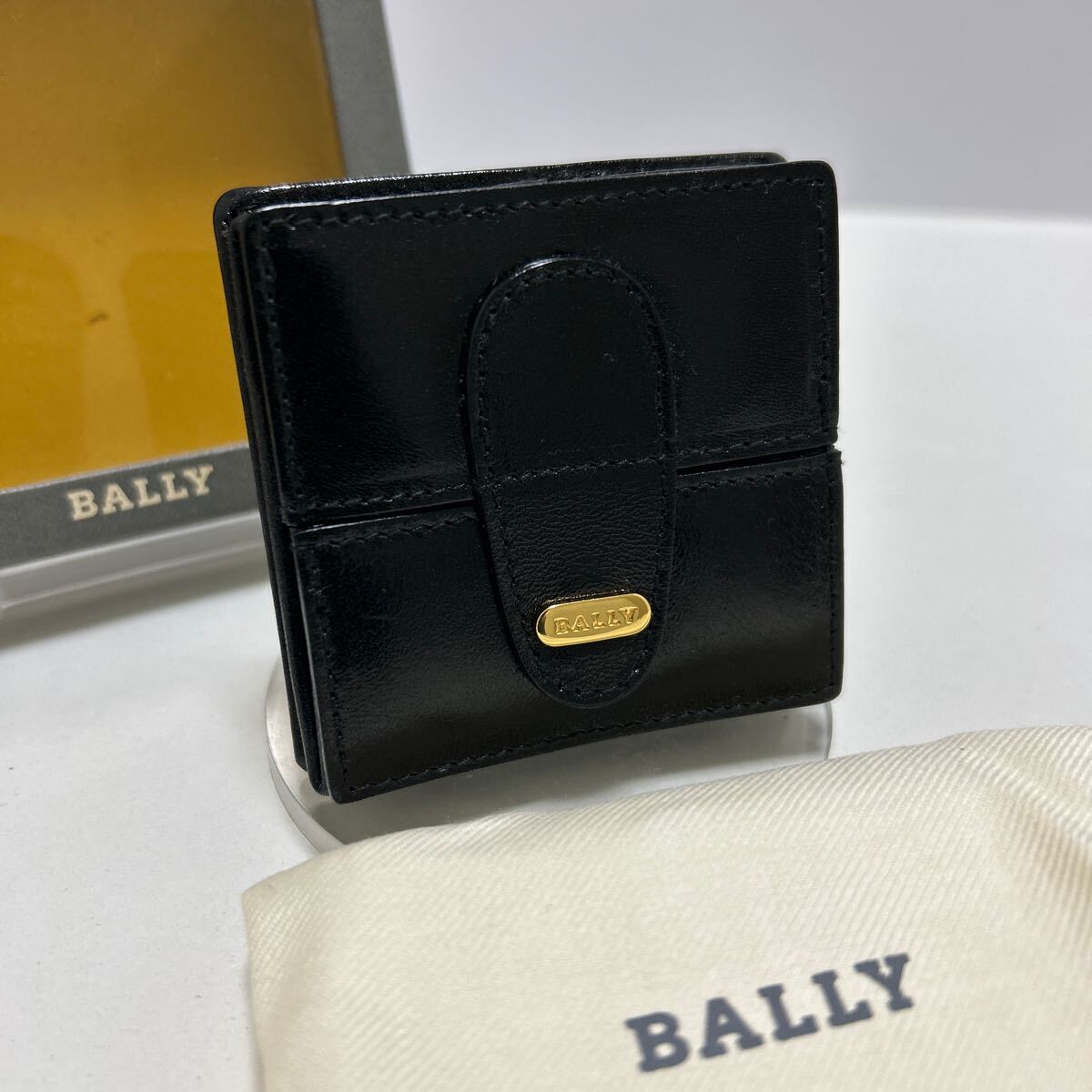 ☆美品-箱&袋付き☆ ◆BALLY バリー コインケース ブラック◆ 本革 小銭入れ ゴールド ロゴ金具 イタリア製 【送料無料】0410-L1