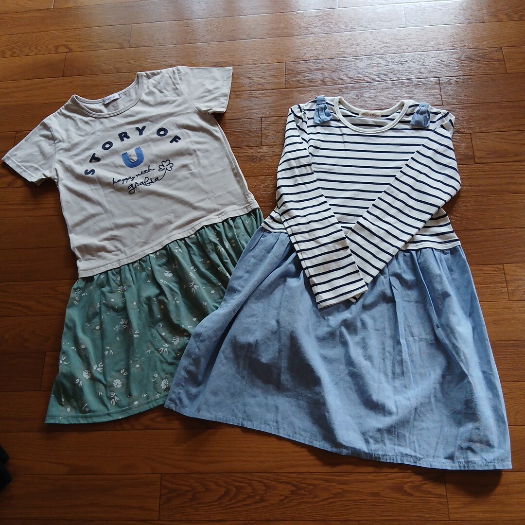 ピーチ&クリーム 150ワンピース(白ボーダー×水色)