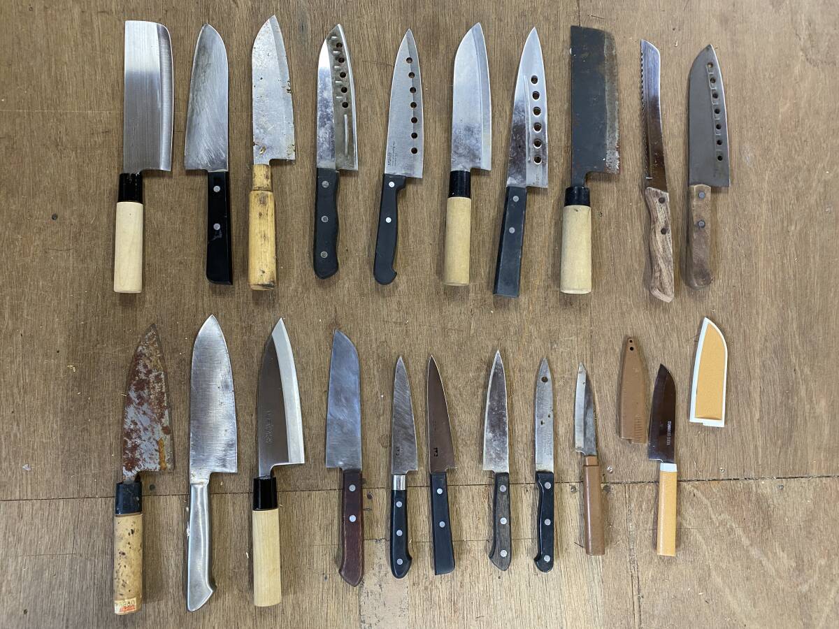 タイトル:E-728 【同梱不可】980円~ 現状品 包丁まとめ 20点セット 関好一/正宗作/関孫六/濃州孫六作 等 万能包丁 菜切包丁 刃物 調理器具