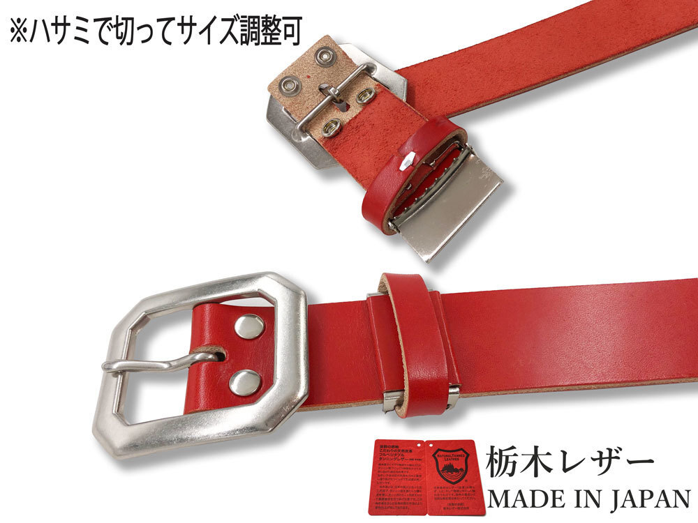 新品 栃木レザーベルト 本革 牛革 ロングサイズ メンズ レディース アカ レッド 国産 レザー 無地 40mm カジュアル ベルト W046RDL