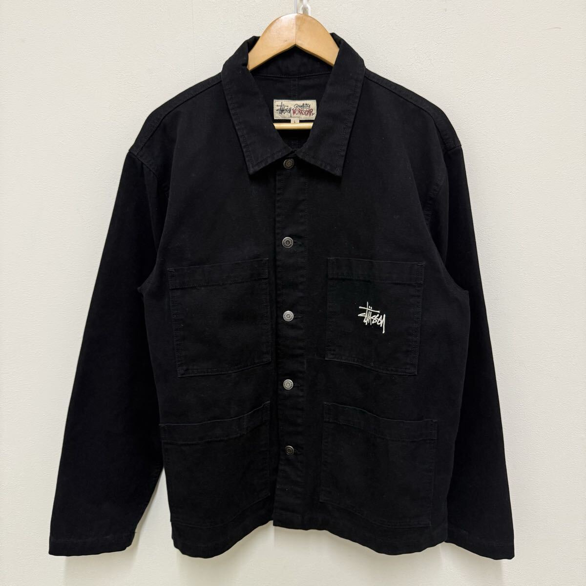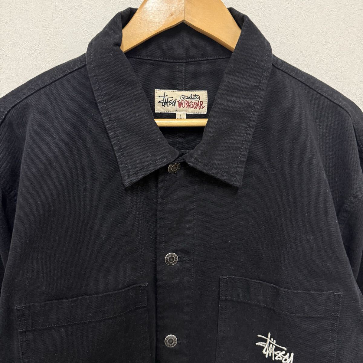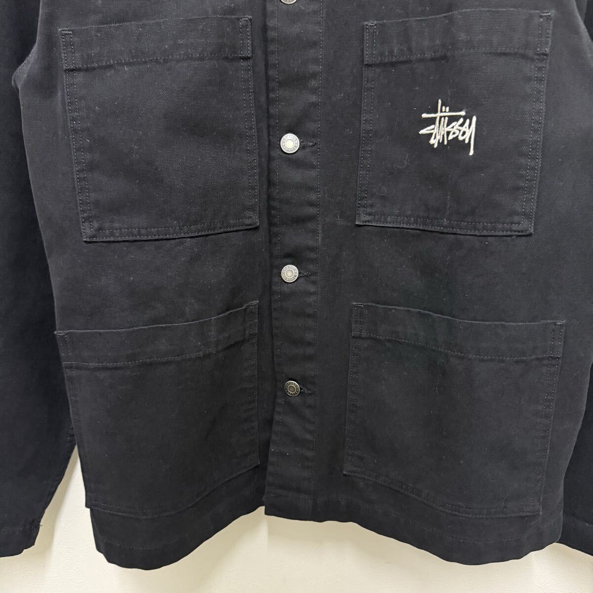 (33) STUSSY カバーオール コットンジャケット ブラック 115588 L メンズ ステューシー ジャケット アウター ロゴ刺繍 黒 ストリート