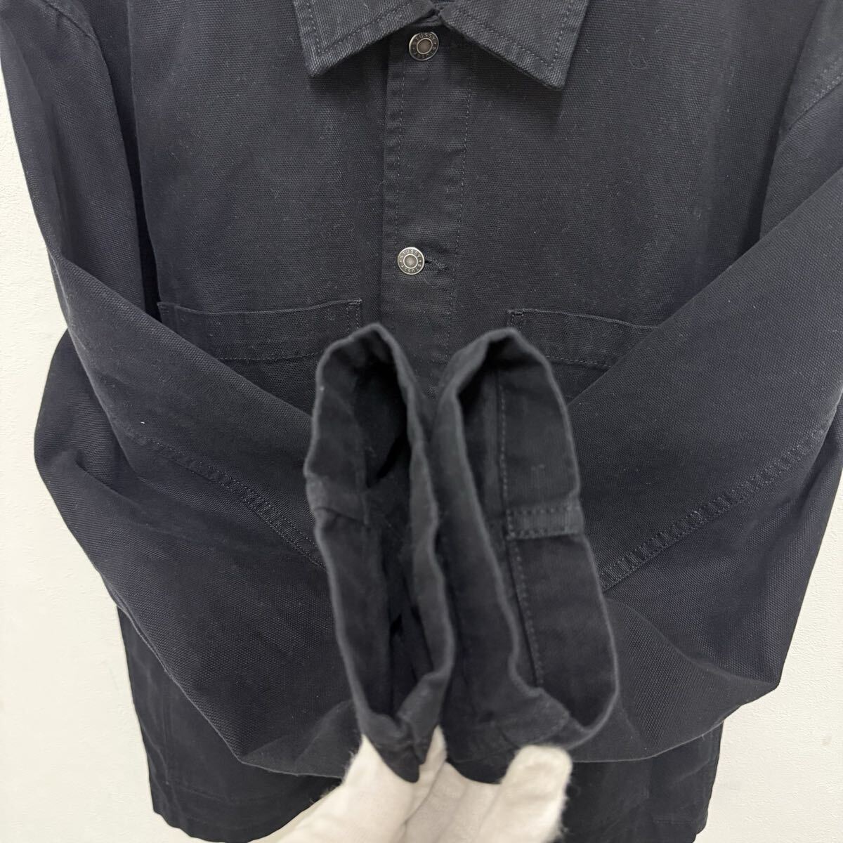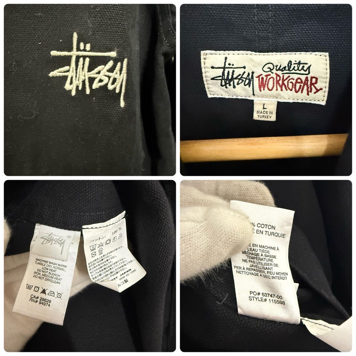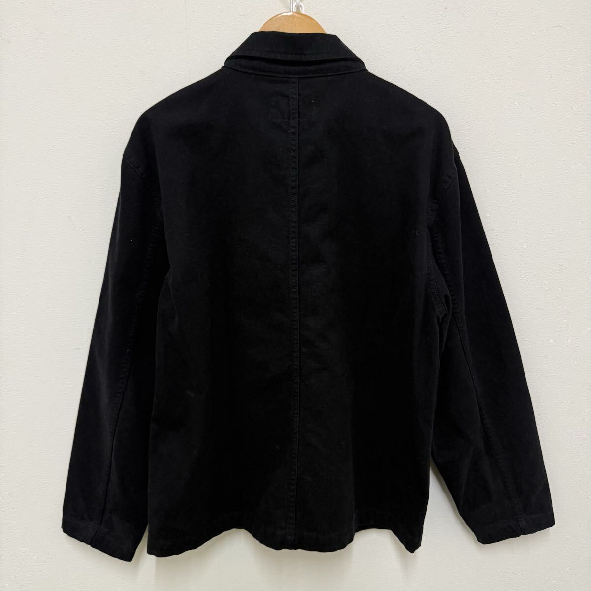 (33) STUSSY カバーオール コットンジャケット ブラック 115588 L メンズ ステューシー ジャケット アウター ロゴ刺繍 黒 ストリート