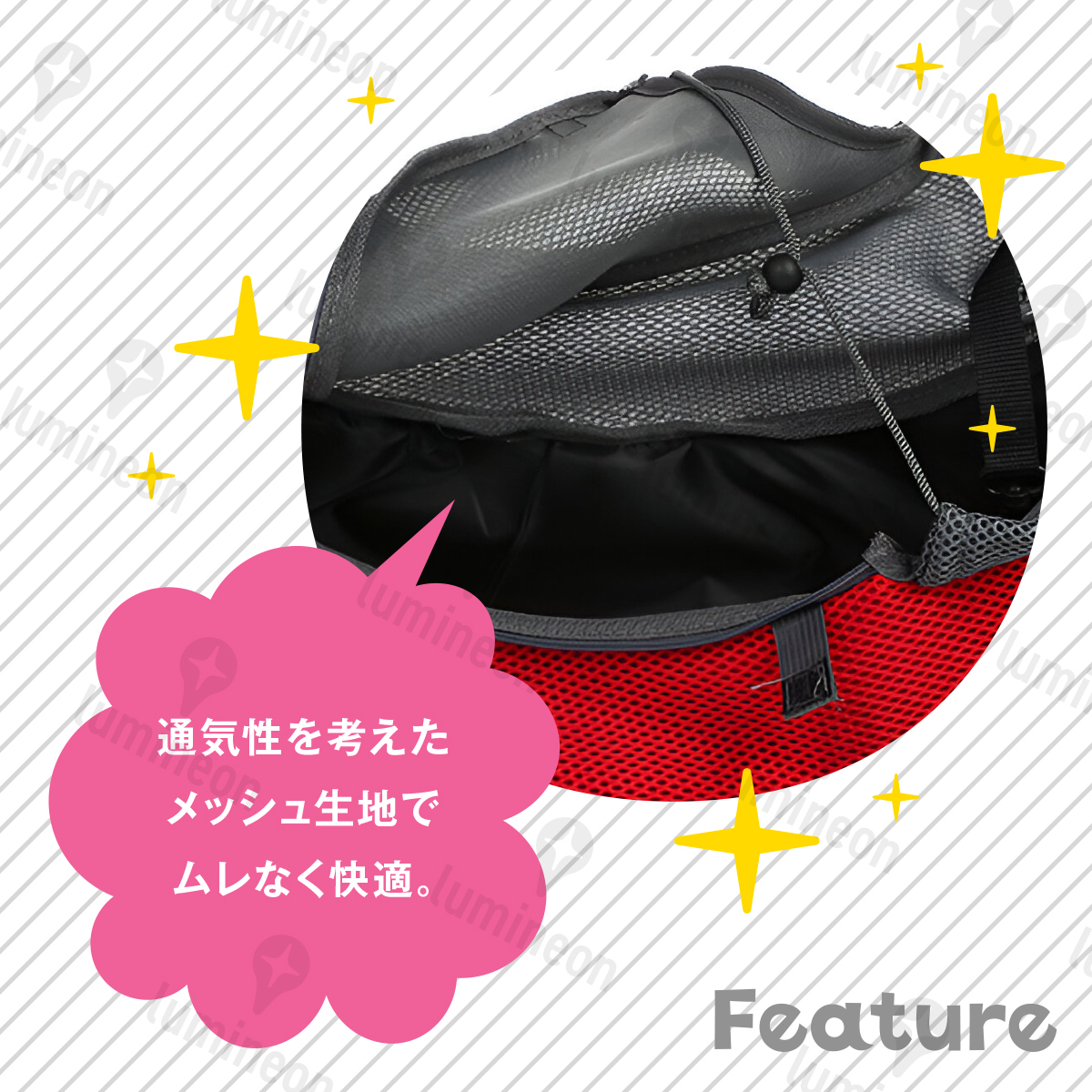メッシュ生地で通気性抜群。