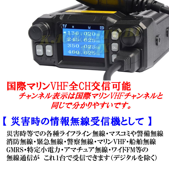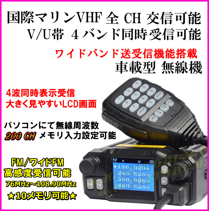 国際マリンVHF 全チャンネル交信OK & V/U帯4バンド 同時受信可能 ワイド送受信&各種 情報受信OK ♪ 車載型 無線機 新品 /過激飛びMAX